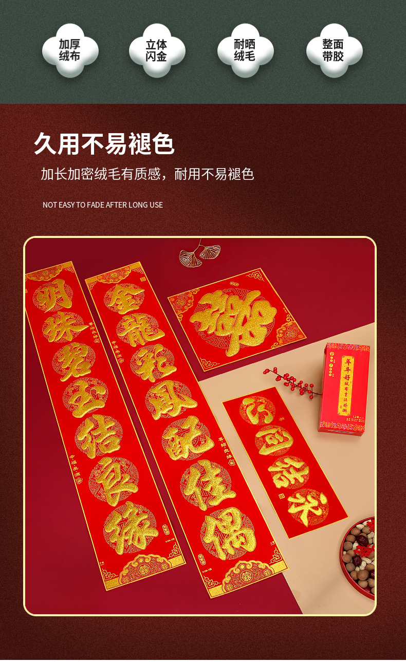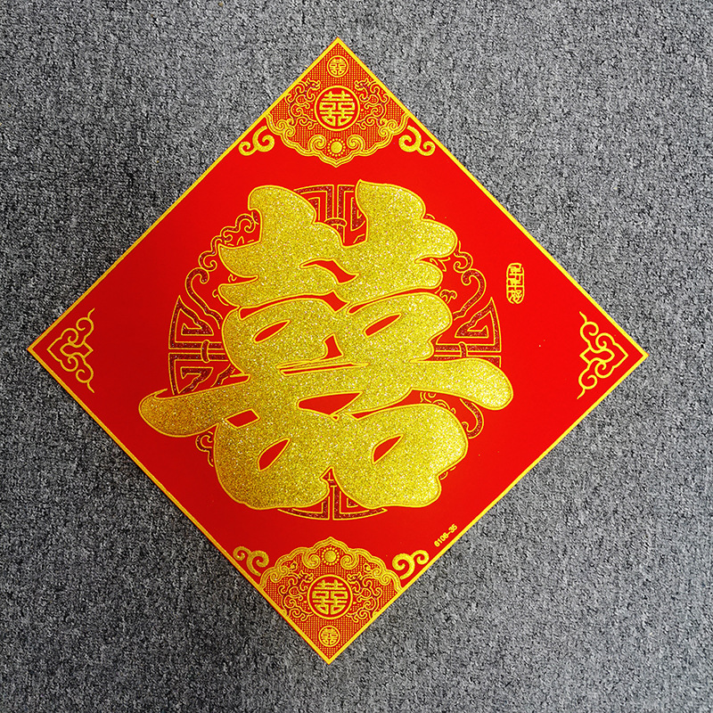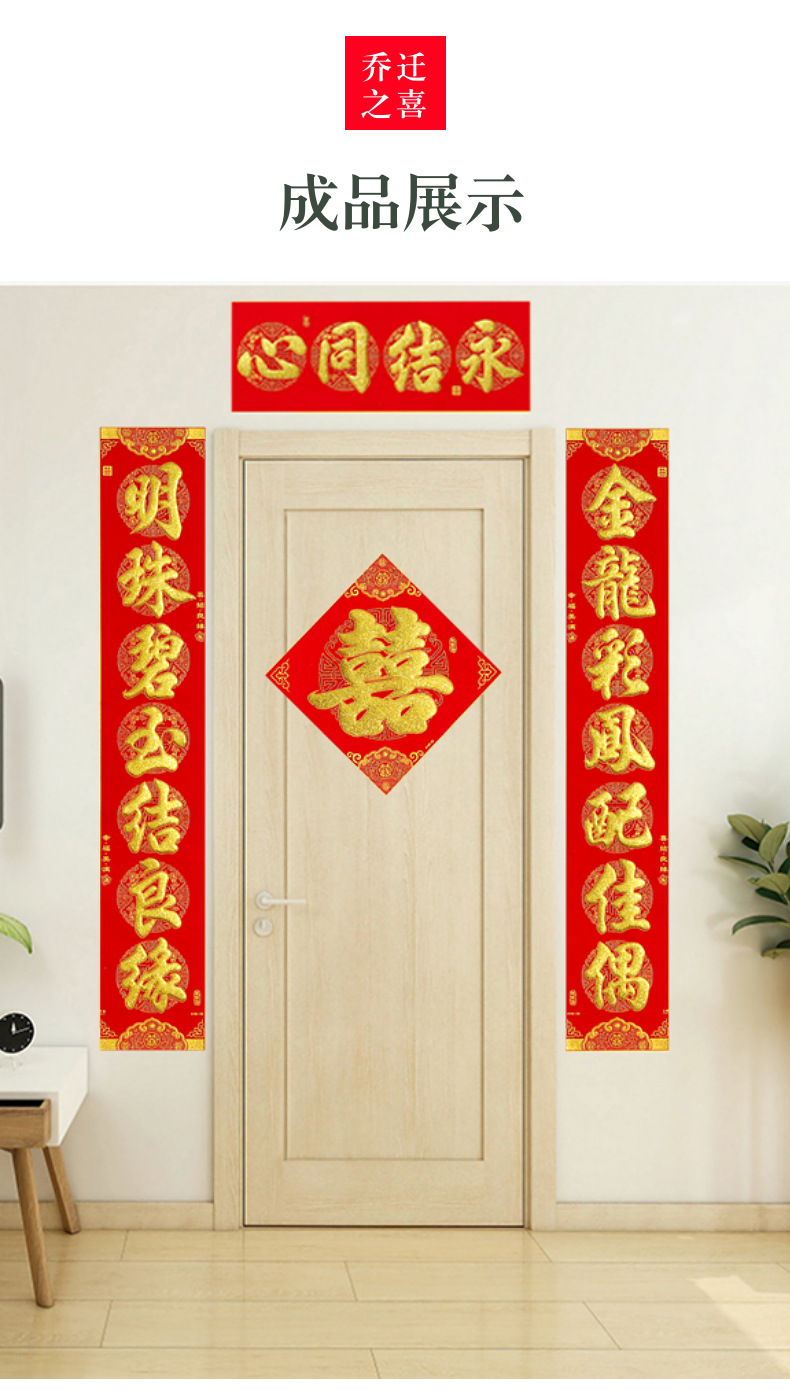 批发加厚植绒布结婚对联烫金结婚庆用品婚房装饰布置礼盒装喜对联