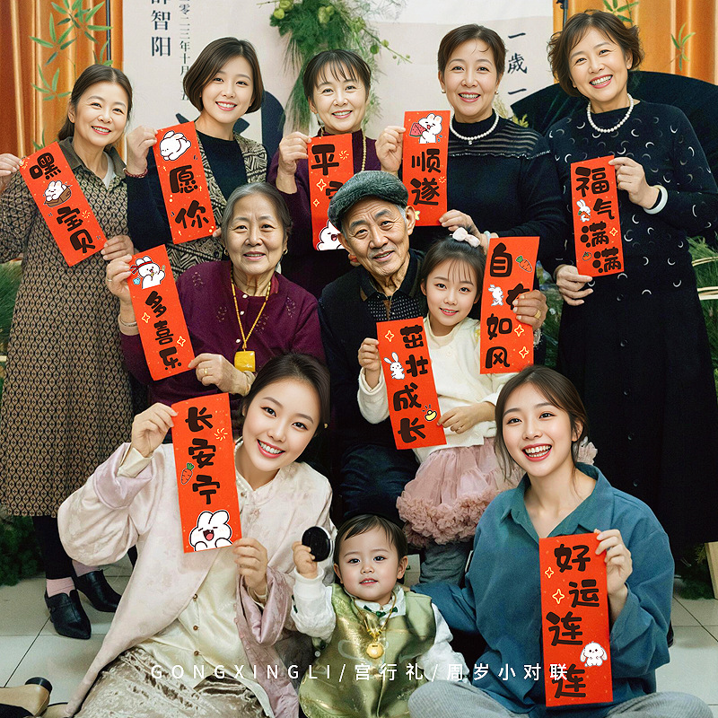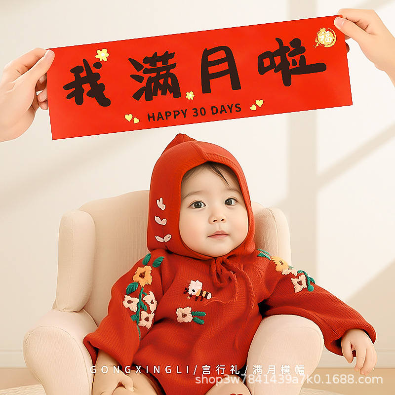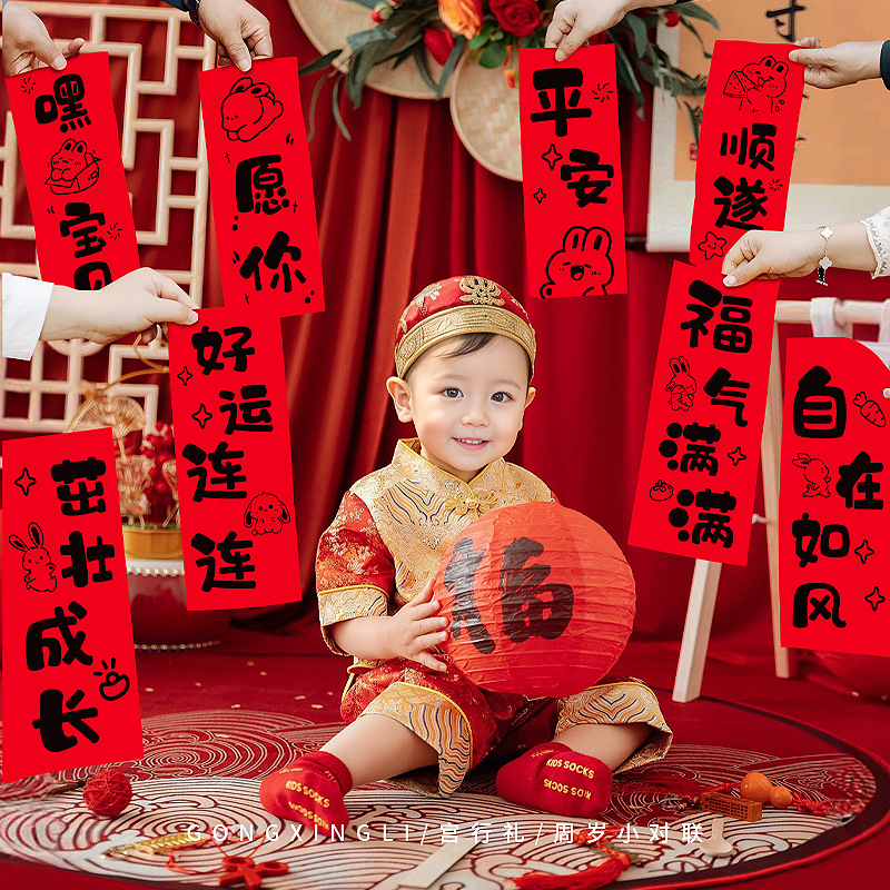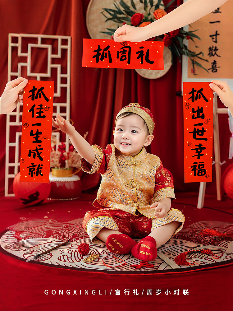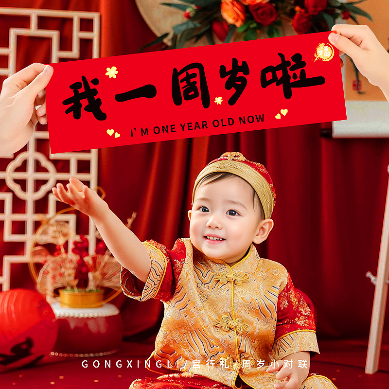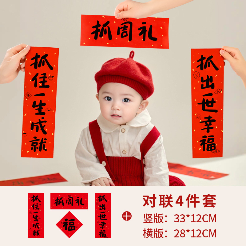 抓周对联男宝宝女一岁抓阄用品道具周岁生日满月拍照横幅周岁礼