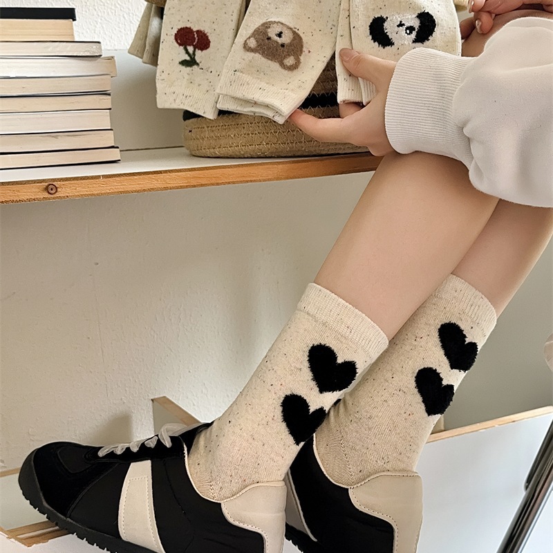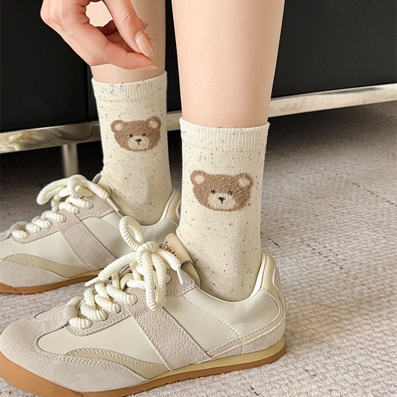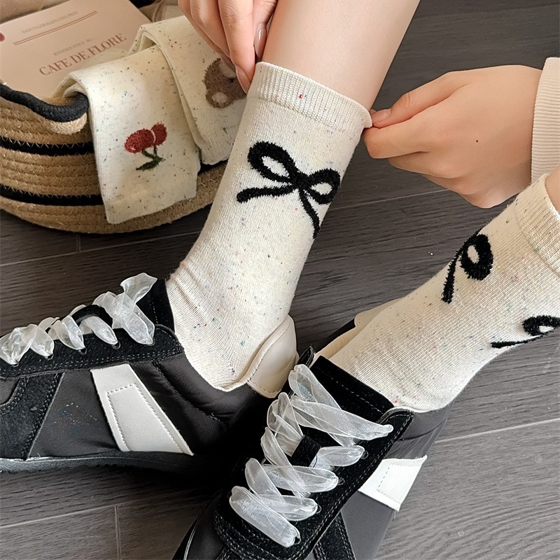 可爱袜子女蝴蝶结点子纱纯棉中筒袜ins韩国卡通小熊日系彩点袜