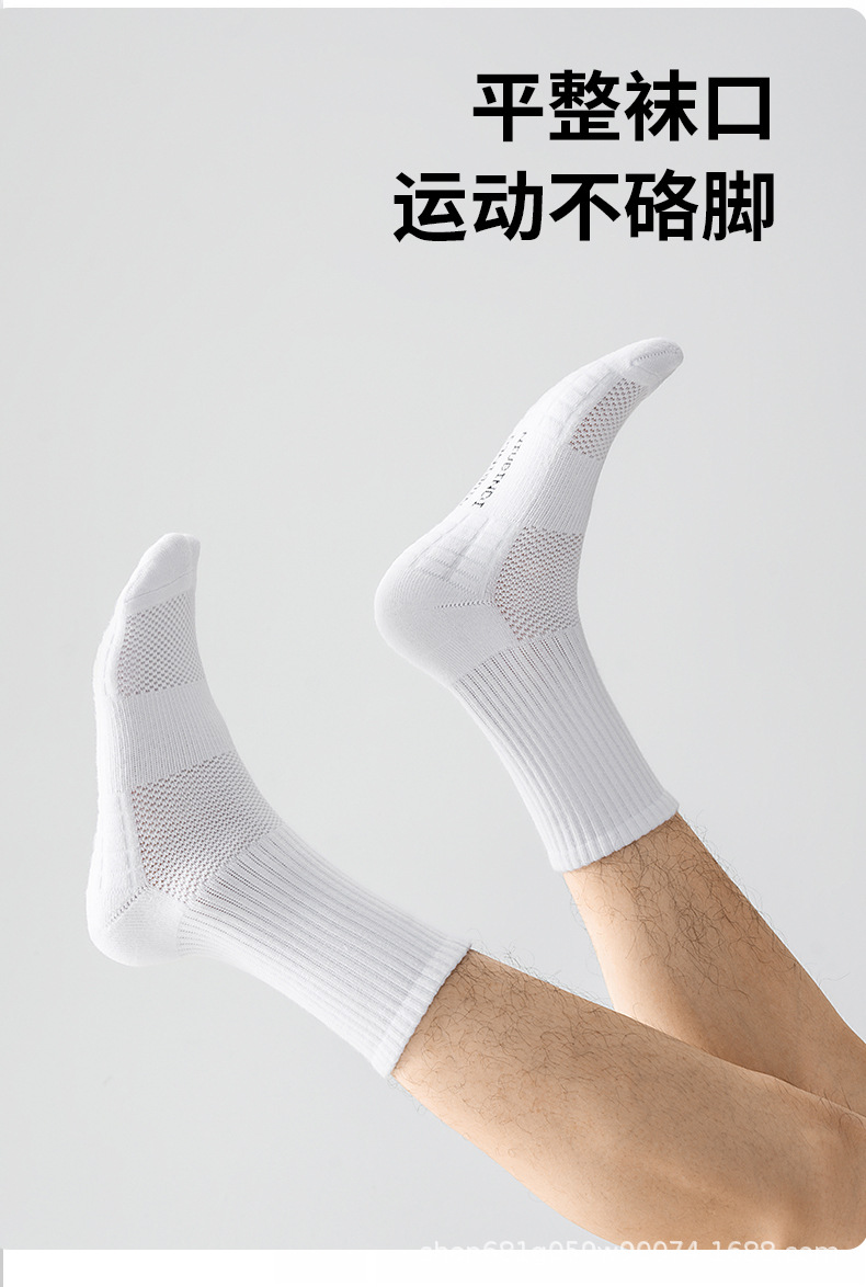 袜子男款夏季100%纯棉防臭中筒运动毛巾底跑步篮球青少年白袜男生