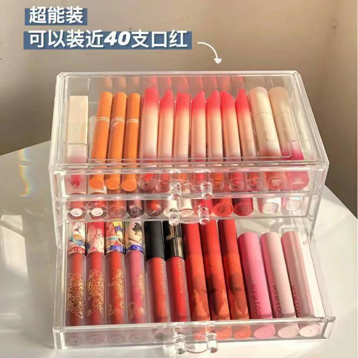 桌面透明抽屉收纳盒化妆品口红首饰整理置物架梳妆台收纳一件代发