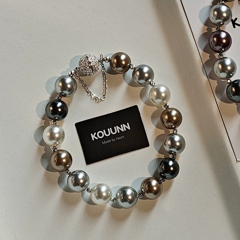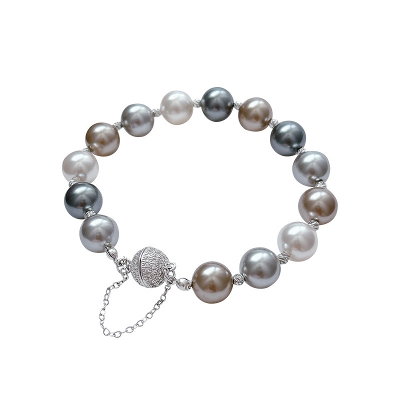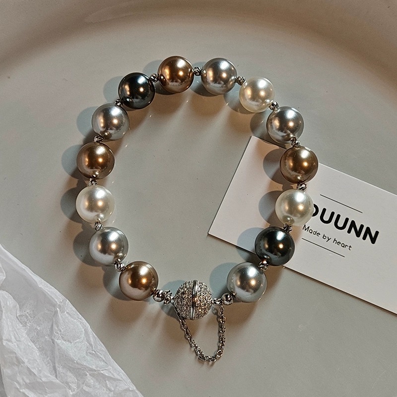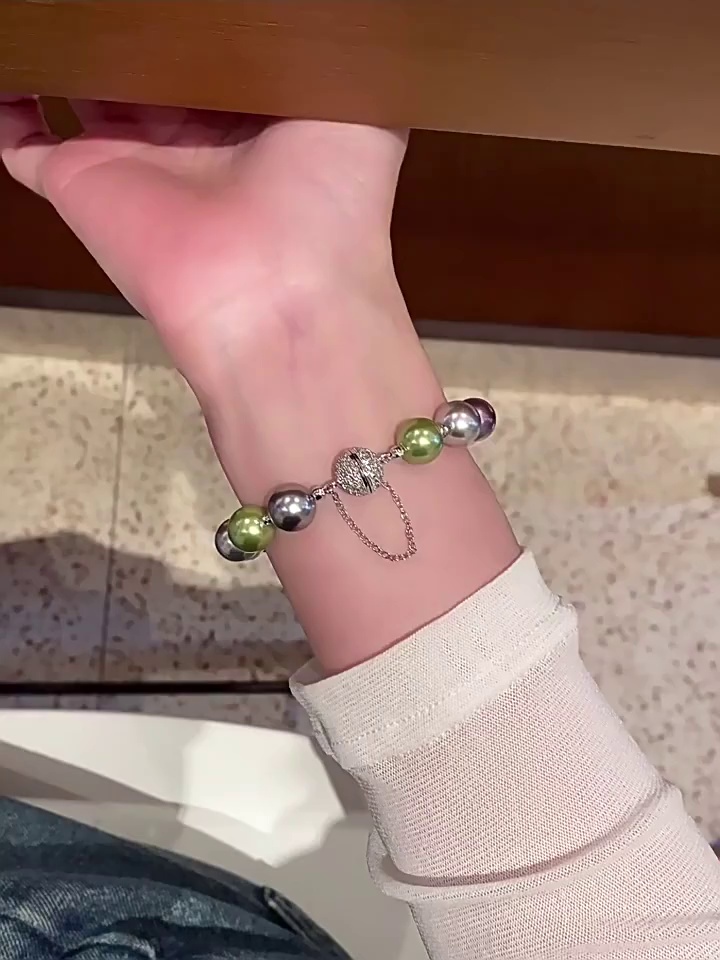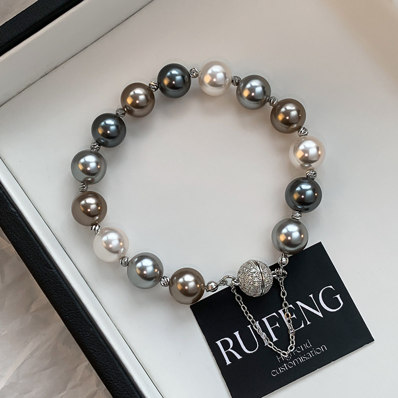 饰品小众高级感防掉磁吸扣手串S家极光大溪地黑混彩色珍珠手链女