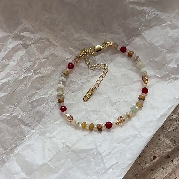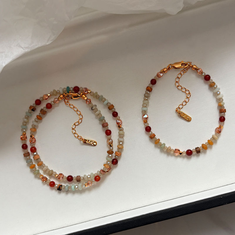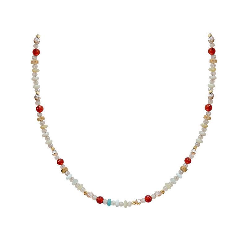 手链饰品叠戴锁骨链颈链彩色多巴胺碧玺石串珍珠夏天小项链配饰女
