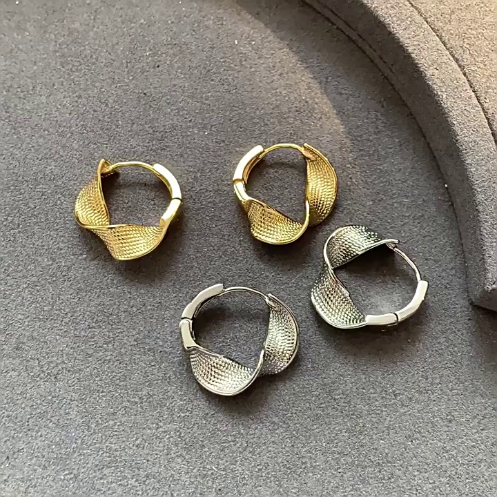 饰品耳环爆款时尚轻奢耳钉气质百搭耳饰设计感金色扭纹圈圈耳环女