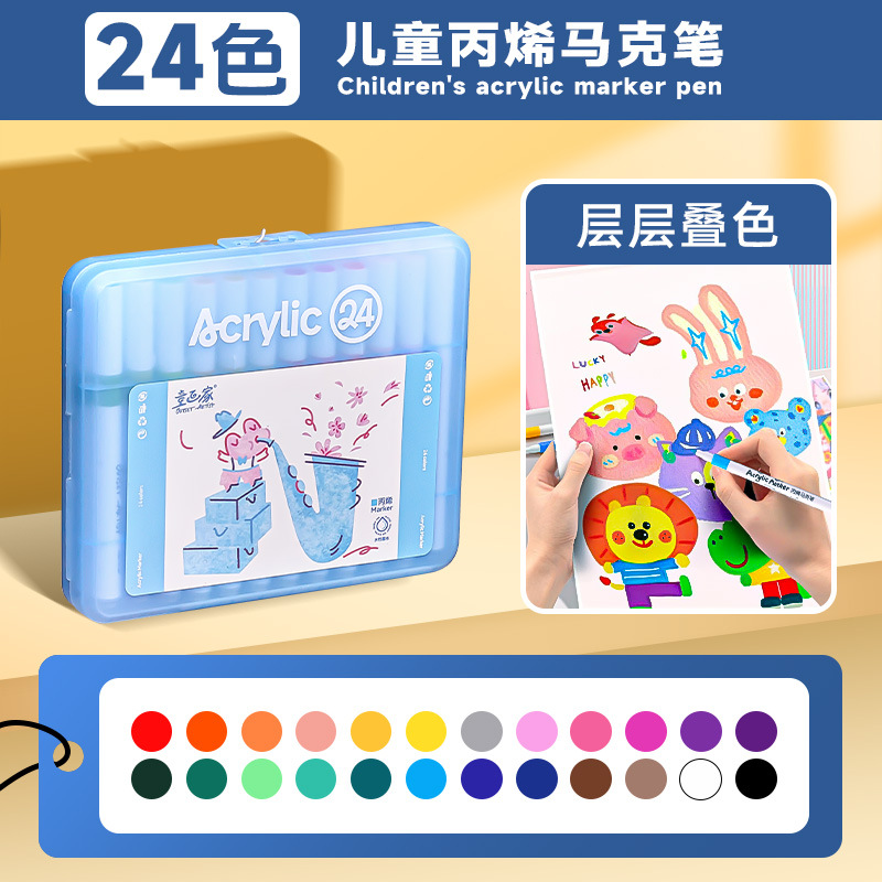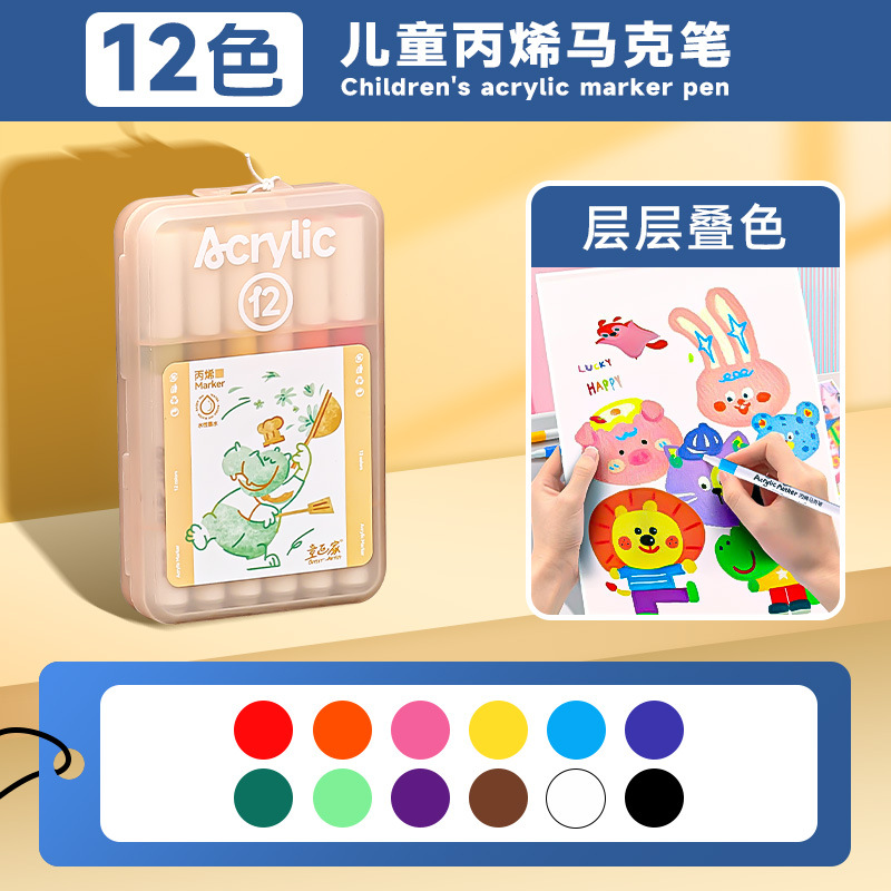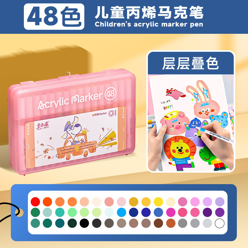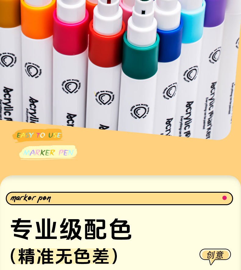 跨境大容量丙烯马克笔DIY手绘涂鸦画笔防水升级圆头安全学生文具
