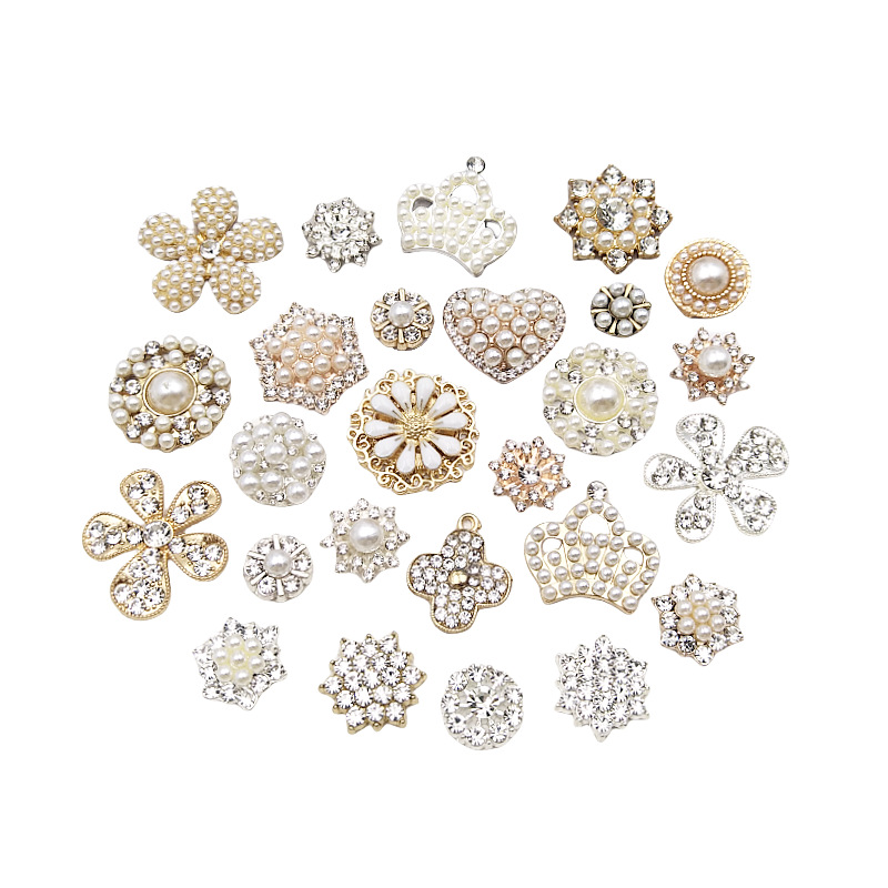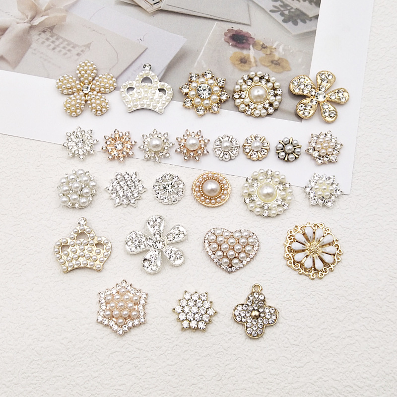 新款洞洞鞋合金diy配件 水钻珍珠多款图案花盘手机壳服饰手工材料