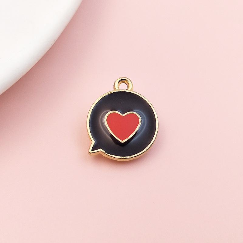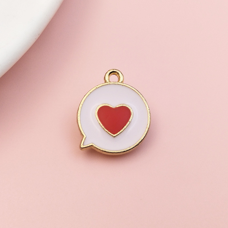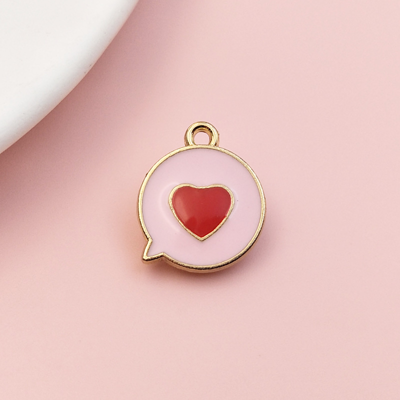 欧美DIY爱心饰品滴油合金配件 聊天框圆牌挂件桃心吊坠耳饰跨境