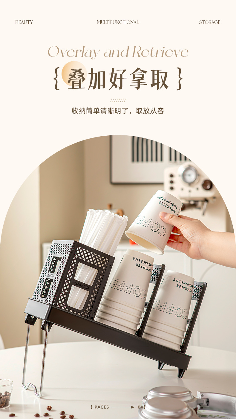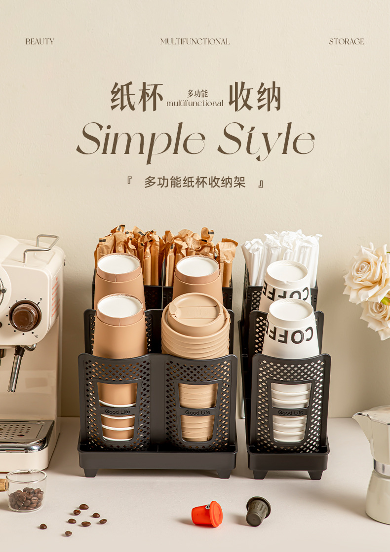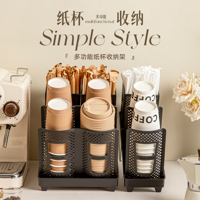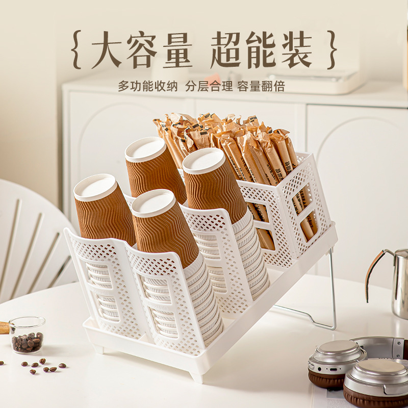 商用咖啡馆奶茶店吧台纸杯架单排双排大容量收纳架取杯器现货批发