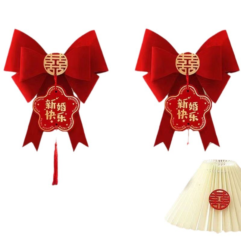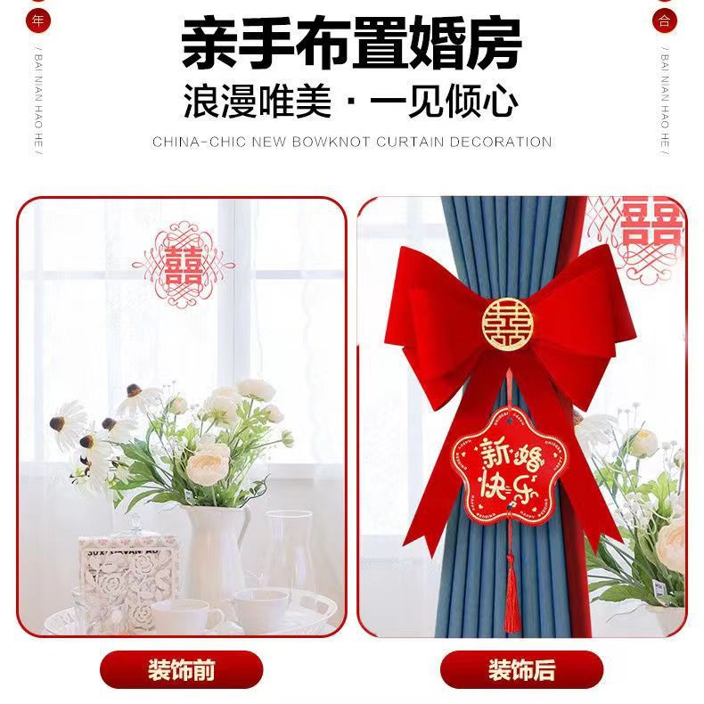 结婚房间装饰窗帘绑带蝴蝶结婚房布置套装女方卧室客厅喜字拉花