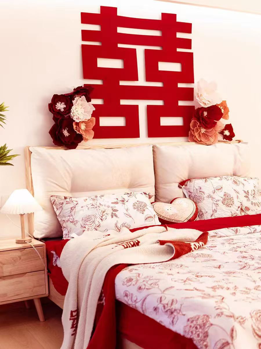 婚房褶皱花立体皱纹花装饰新房床头卧室背景墙布置结婚婚庆用品