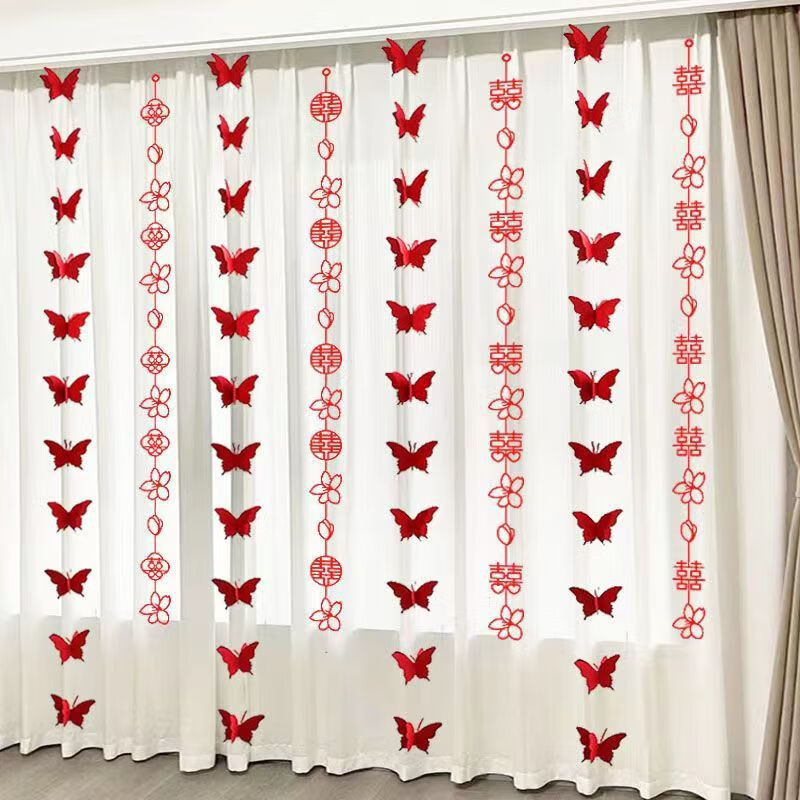 婚房布置套装立体红色蝴蝶拉花结婚装饰新房卧室客厅拉花窗帘挂件