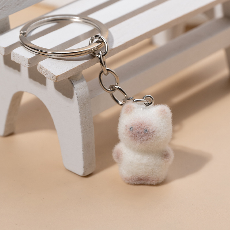 新品跨境树脂植绒可爱立体暹罗猫钥匙扣挂件汽车包包挂件饰品批发
