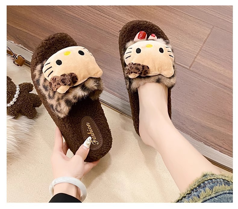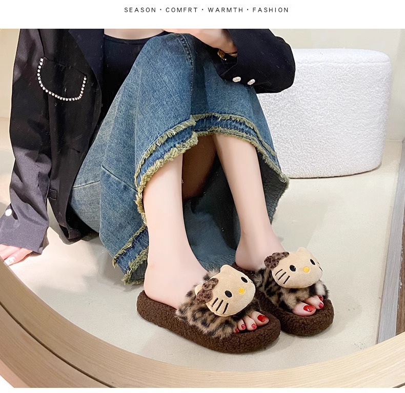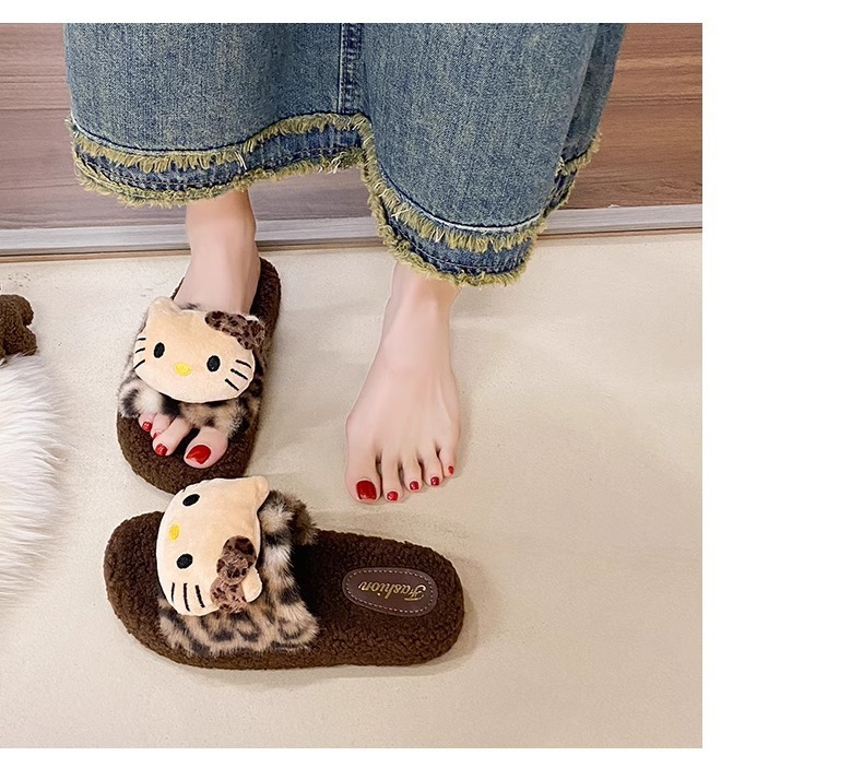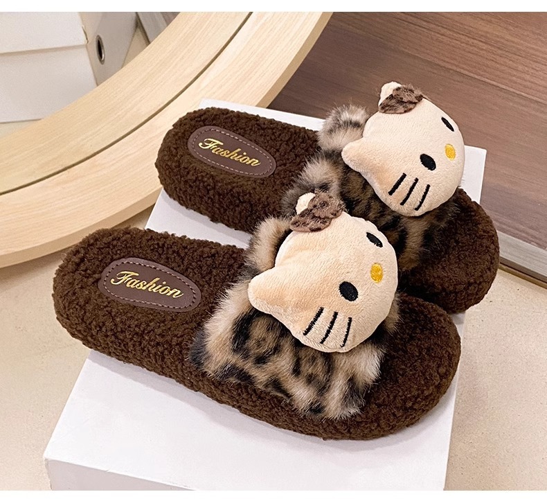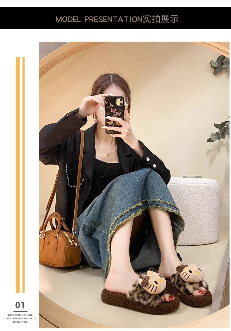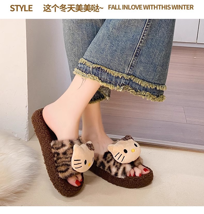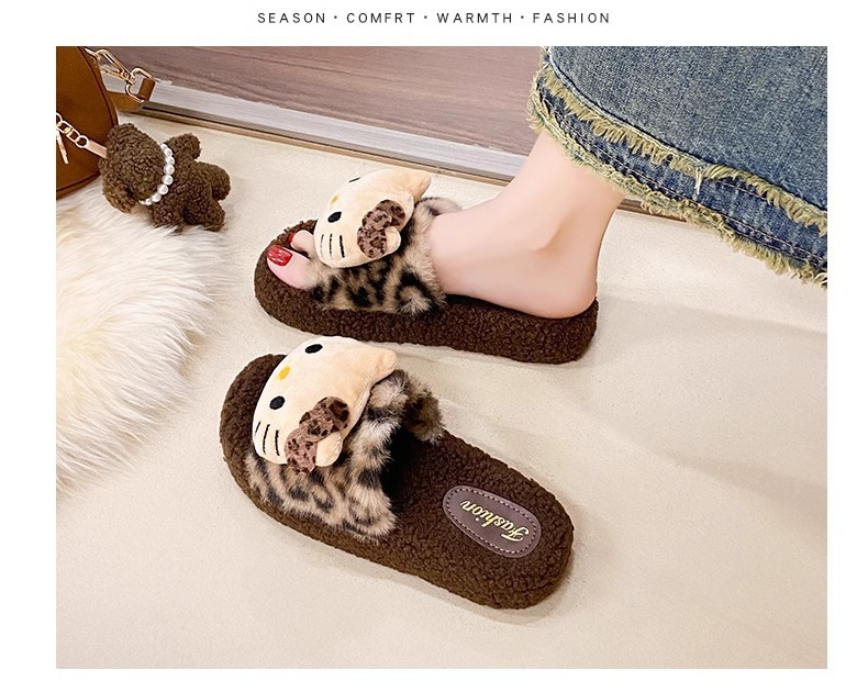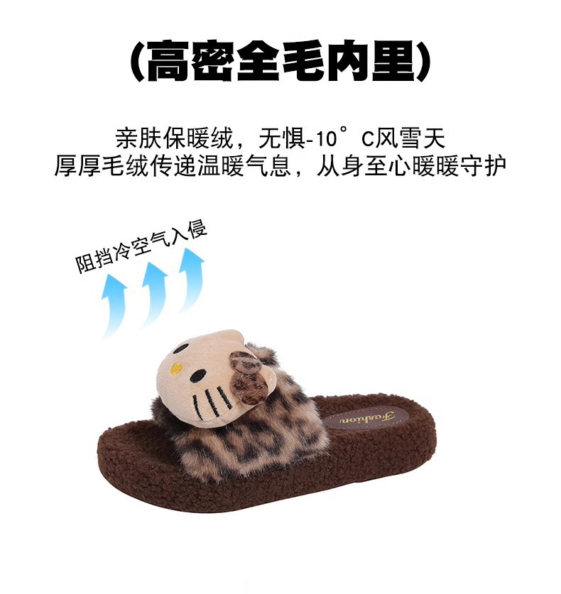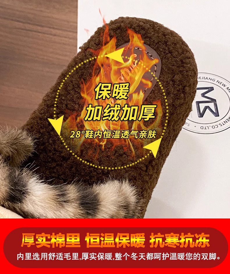 秋冬季居家毛毛豹纹拖鞋女2025新款厚底防滑可爱外穿保暖棉拖鞋女