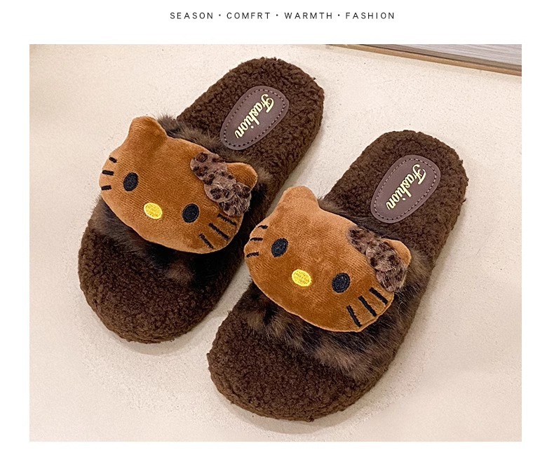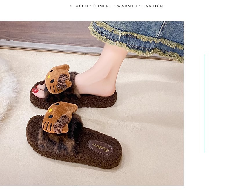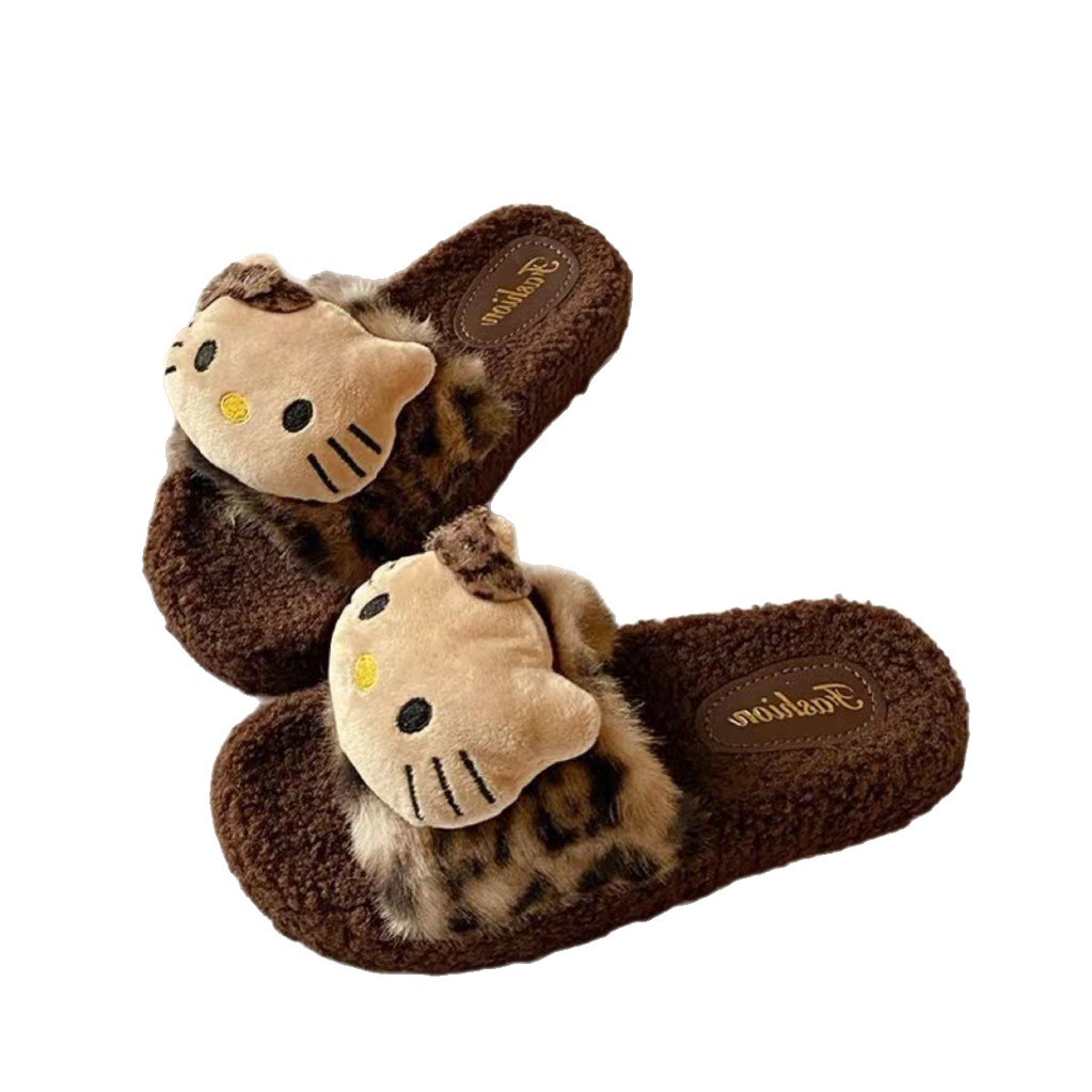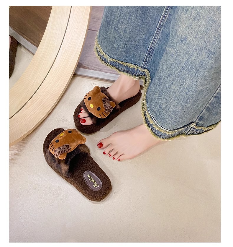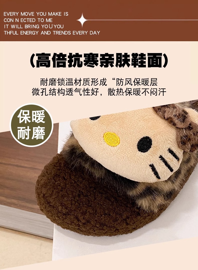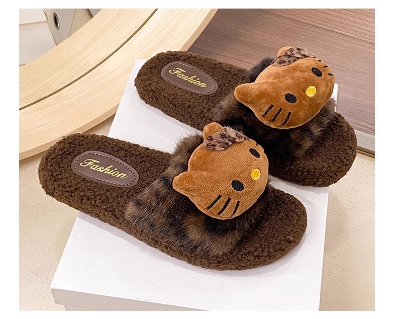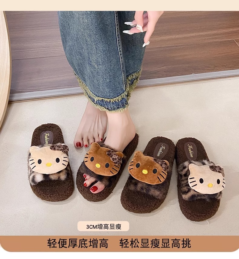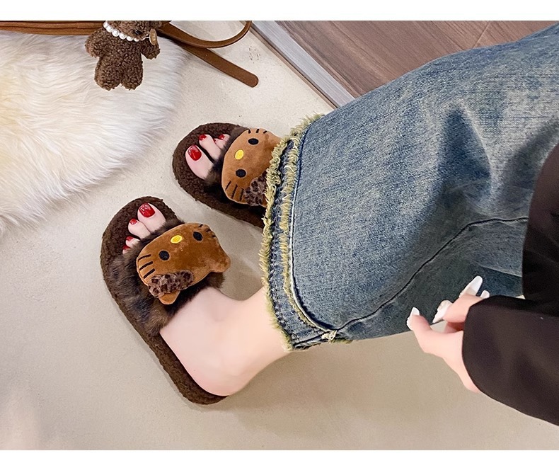 秋冬季居家毛毛豹纹拖鞋女2025新款厚底防滑可爱外穿保暖棉拖鞋女