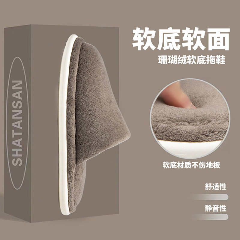 棉拖鞋女秋冬季毛毛绒情侣踩屎感家居室内保暖男卧室防滑家居拖鞋