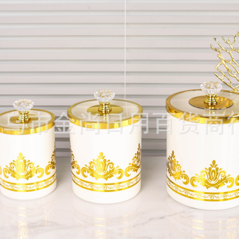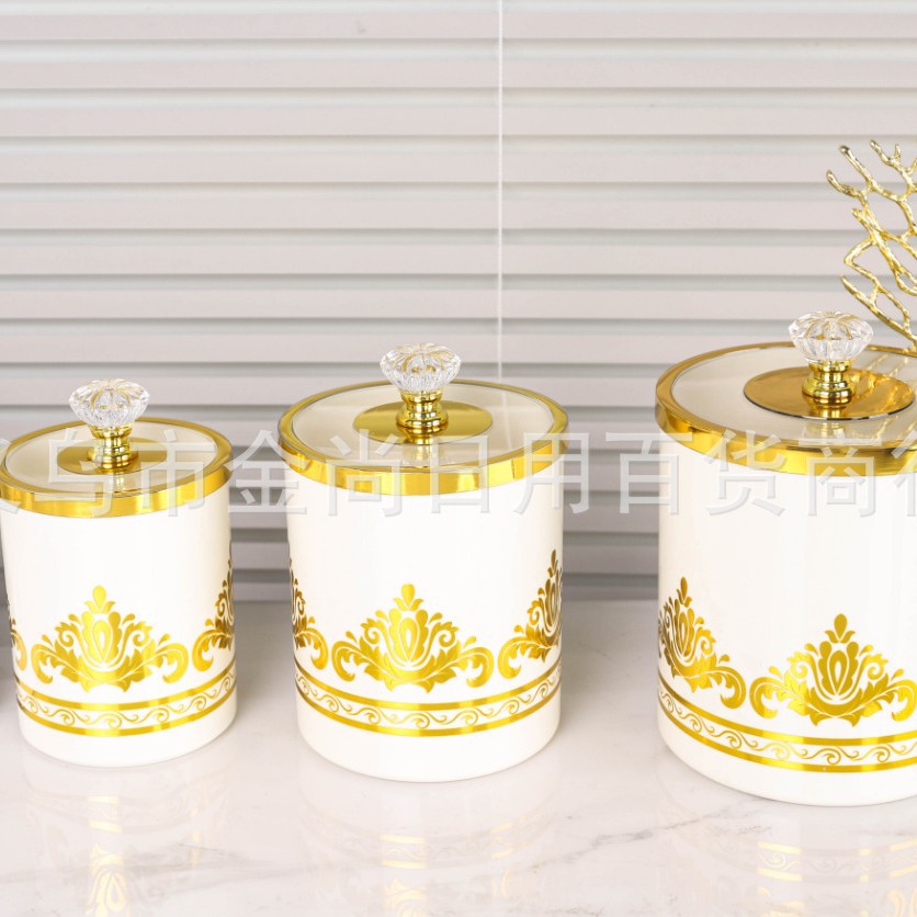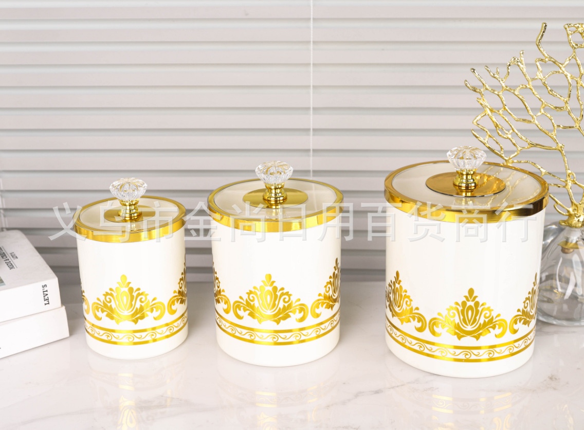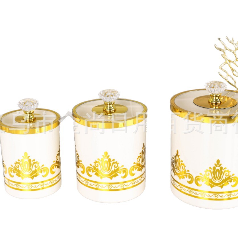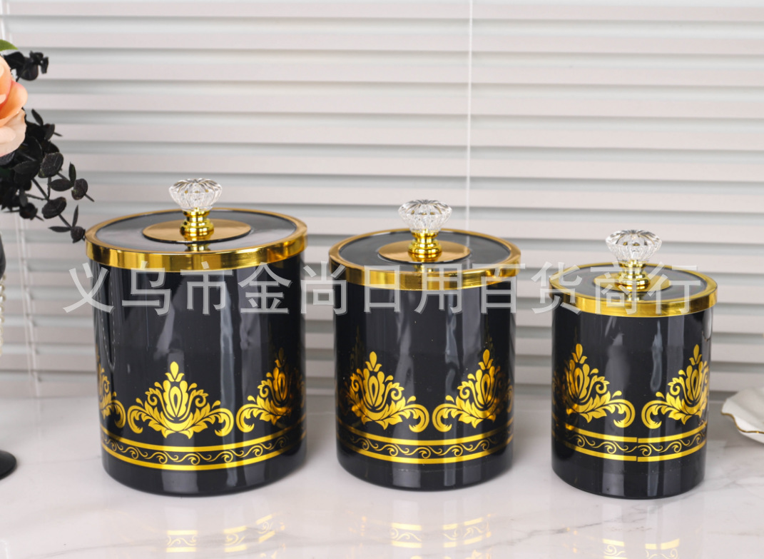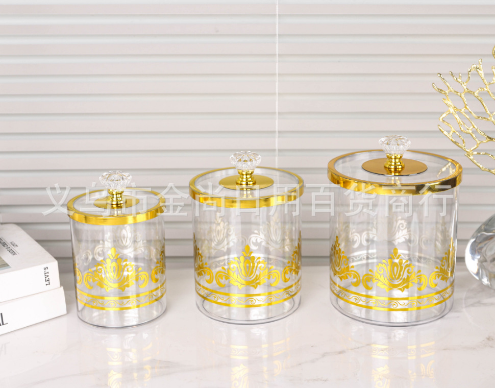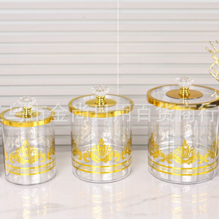 欧式透明实色塑料带脚糖果罐金属储物罐创意客厅茶几装饰品收纳瓶