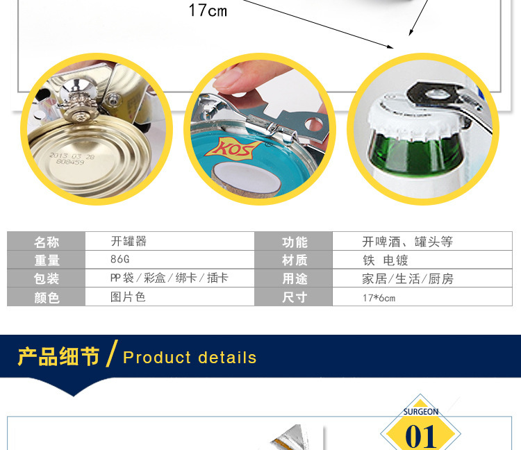 跨境不锈钢手动开罐器罐头开瓶器便携罐头刀can opener manual