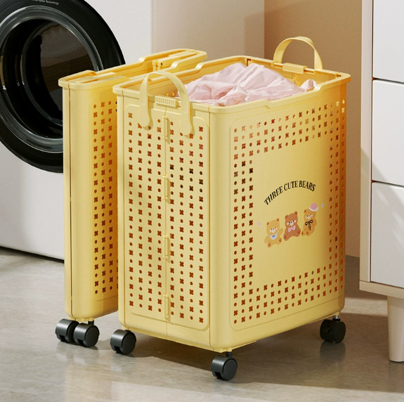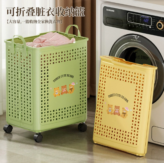 新款折叠家用带轮推车脏衣篮浴室阳台大容量脏衣框衣物收纳储物筐