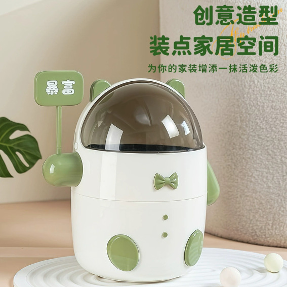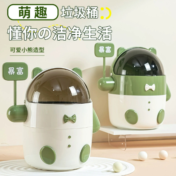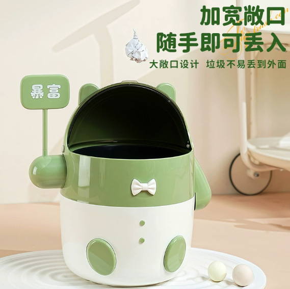 卡通家用垃圾桶2025新款加厚高颜值创意客厅卧室厨房可爱带盖纸篓