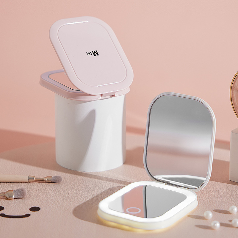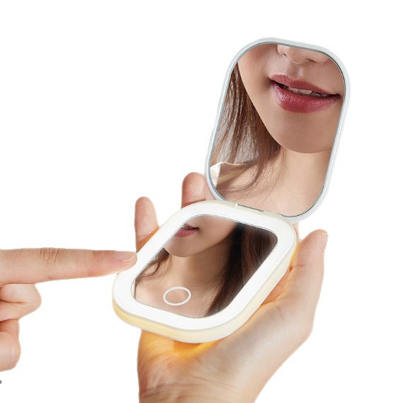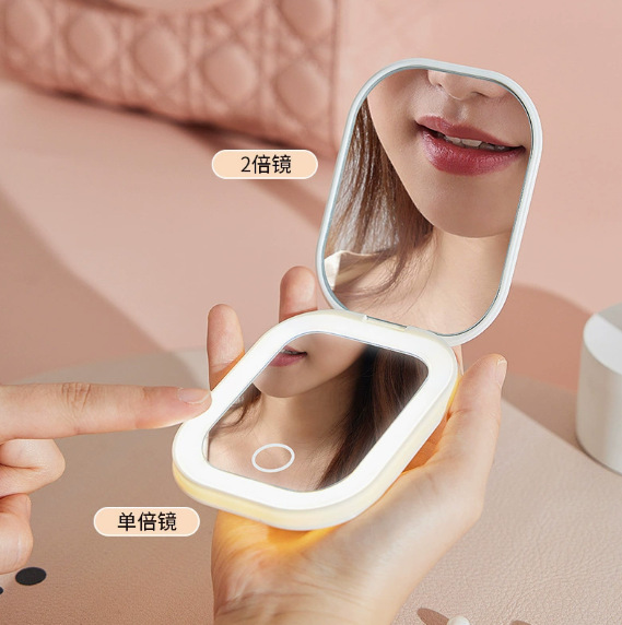 新款化妆镜带led灯可折叠便携式随身携带小镜子女收纳盒一体高清