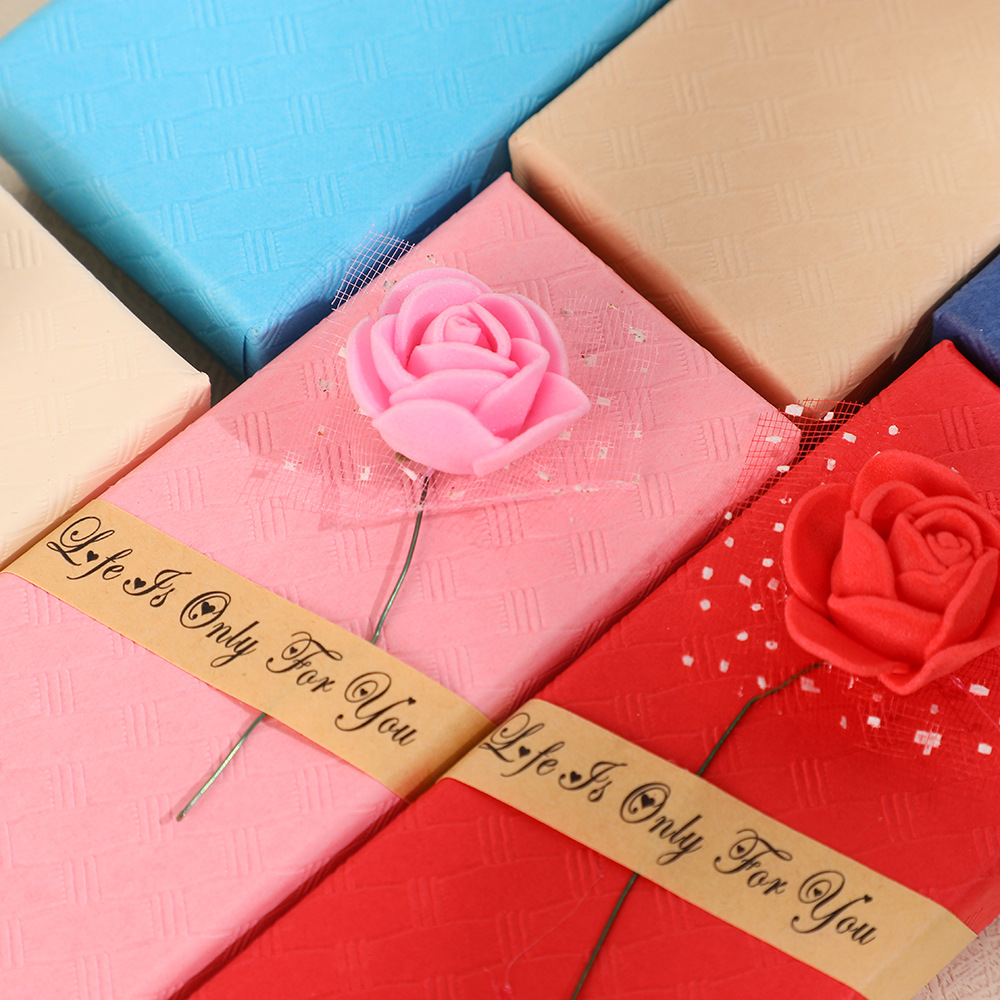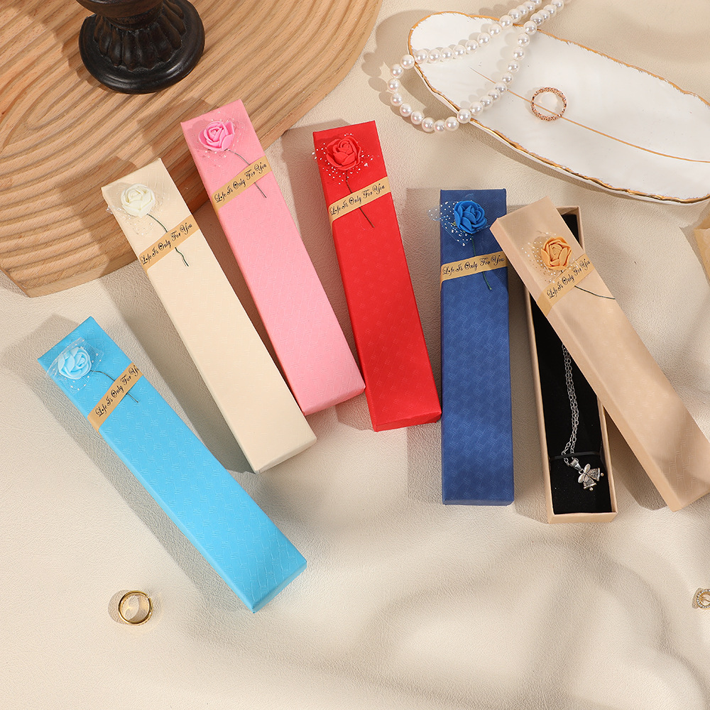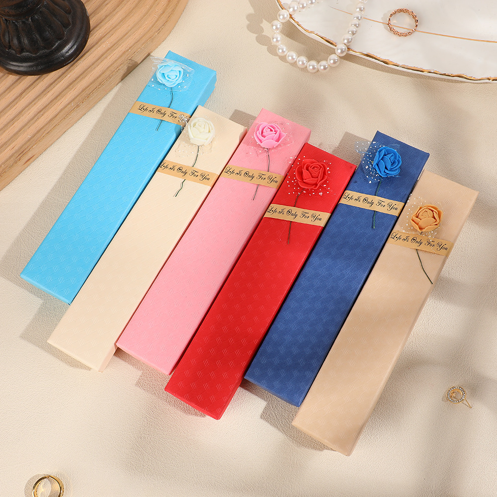 多彩色斜玫瑰精美首饰盒天地盖项链收纳饰品盒子七夕节礼物包装盒