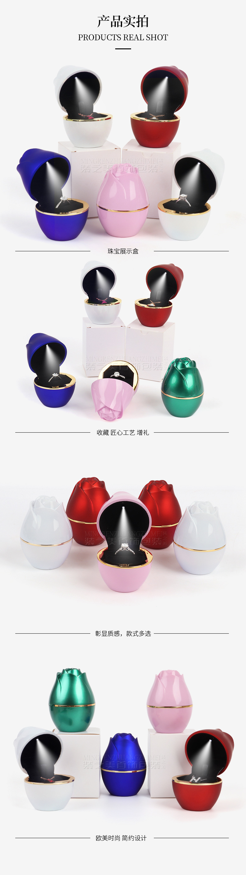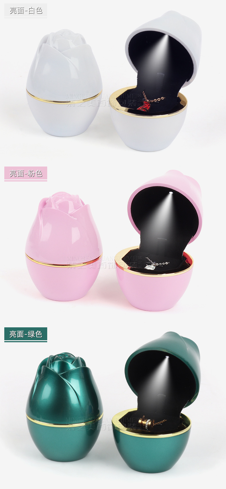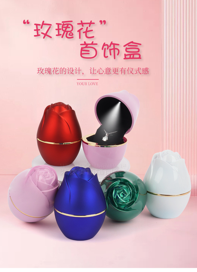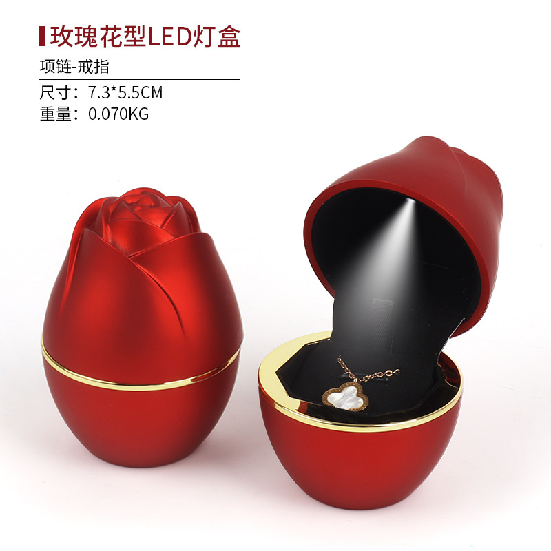 浪漫LED灯玫瑰花首饰盒 求婚戒指盒吊坠项链盒首饰收纳盒子饰品盒