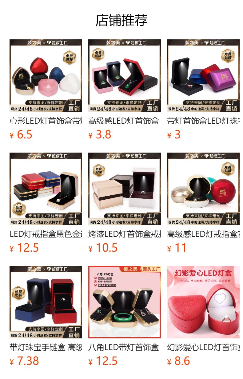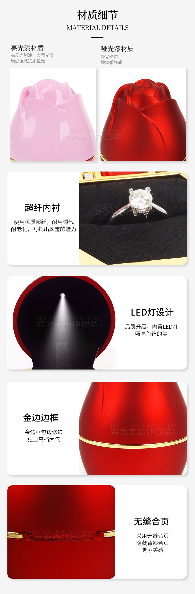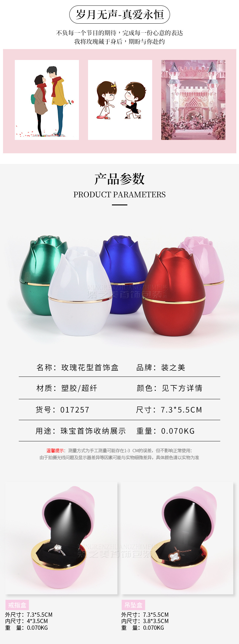 浪漫LED灯玫瑰花首饰盒 求婚戒指盒吊坠项链盒首饰收纳盒子饰品盒