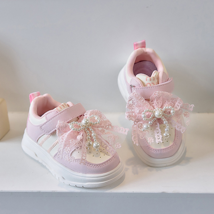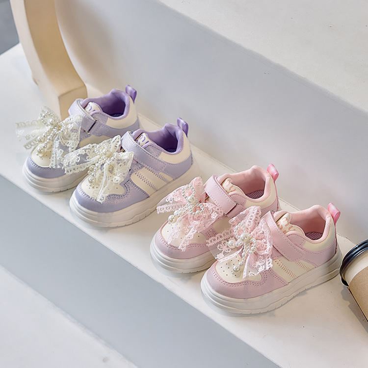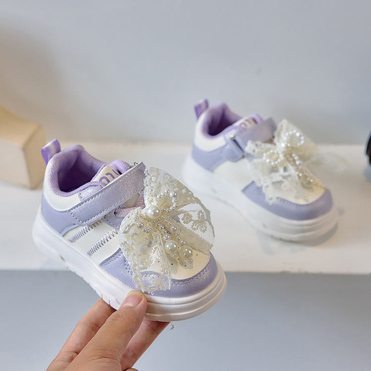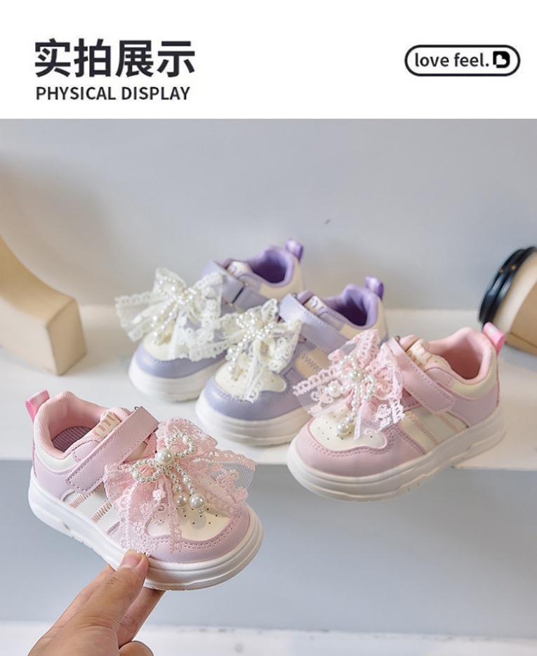 儿童魔术贴低帮女童蝴蝶结板鞋2025秋季新款休闲鞋中小童小白鞋