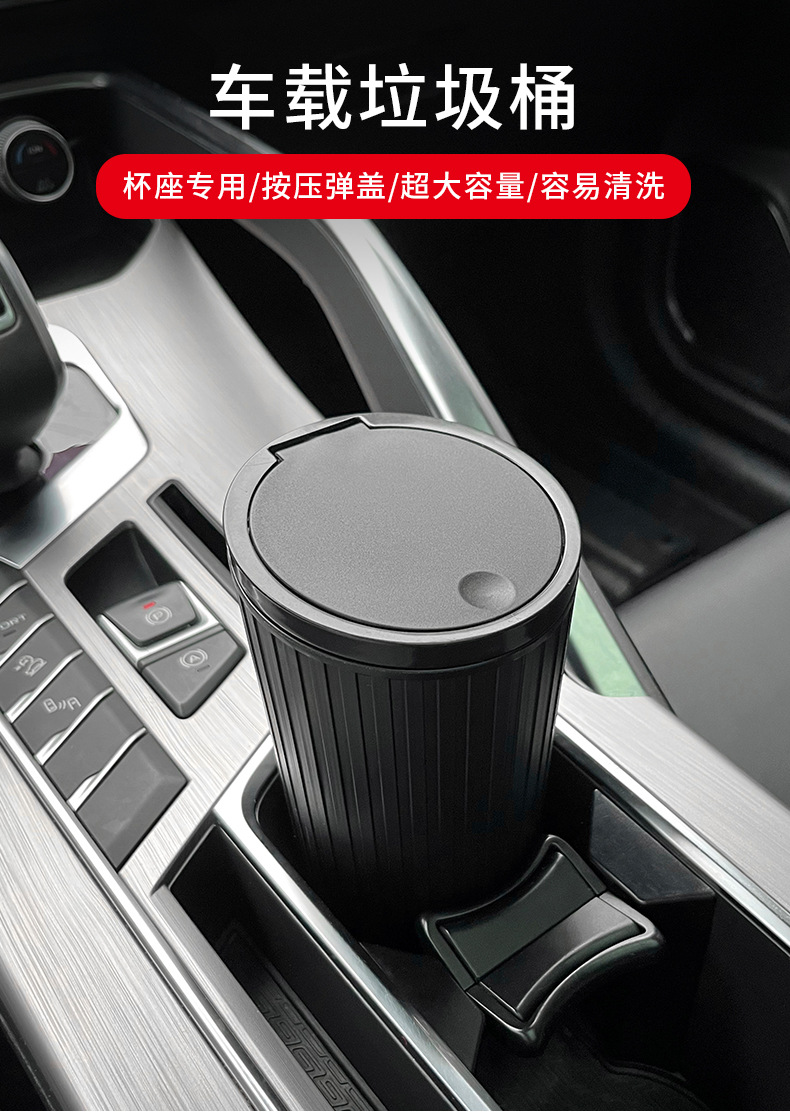 汽车按压开关式圆形带盖车载垃圾桶不漏水扶手置物盒车用收纳桶