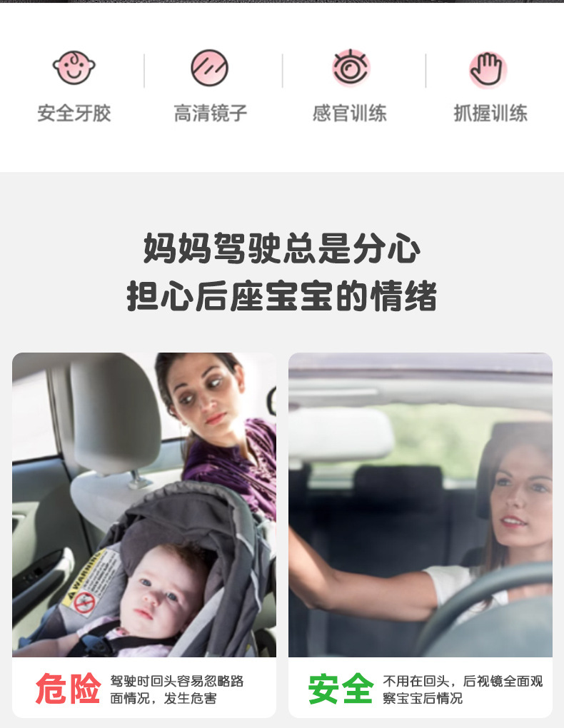 车载儿童安全座椅观察镜宝宝提篮后视镜汽车内婴儿观察镜子反光镜