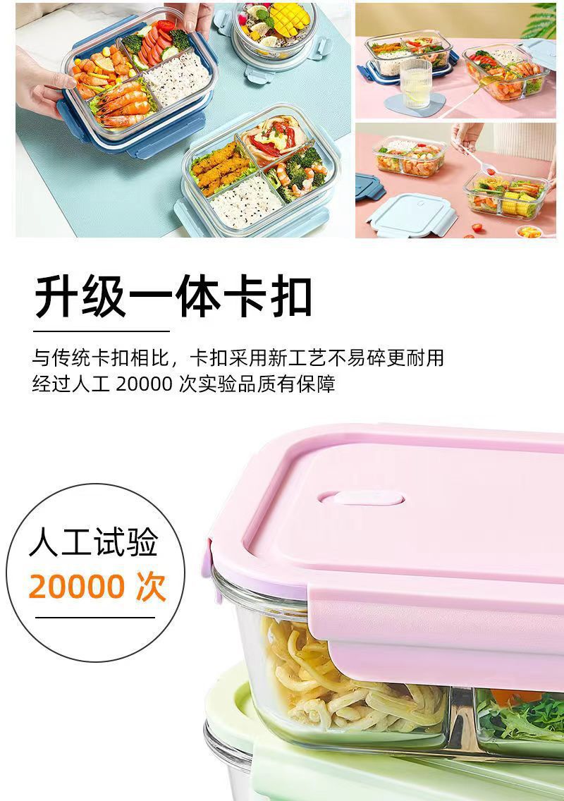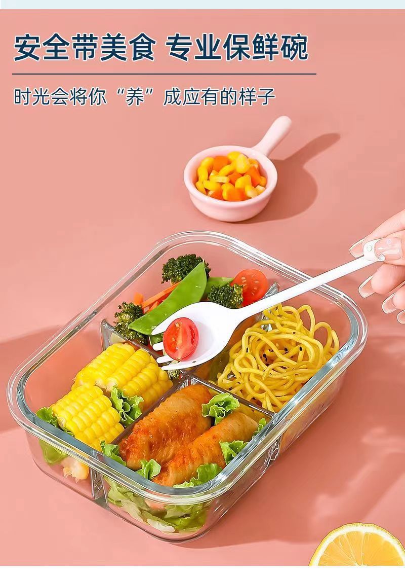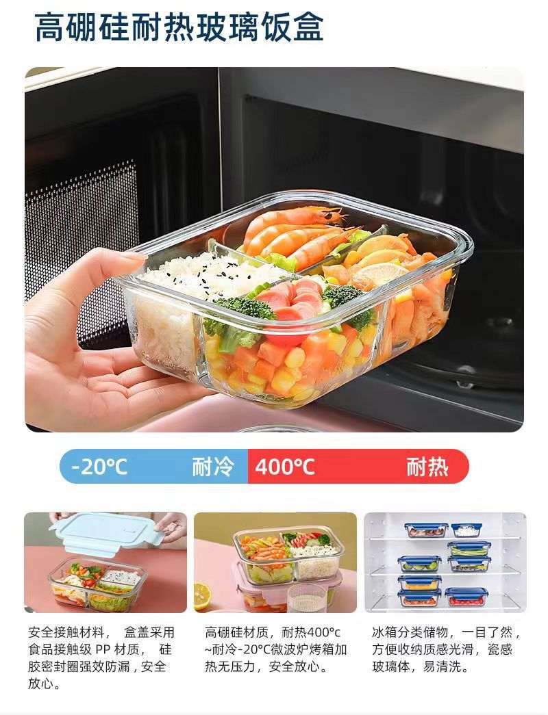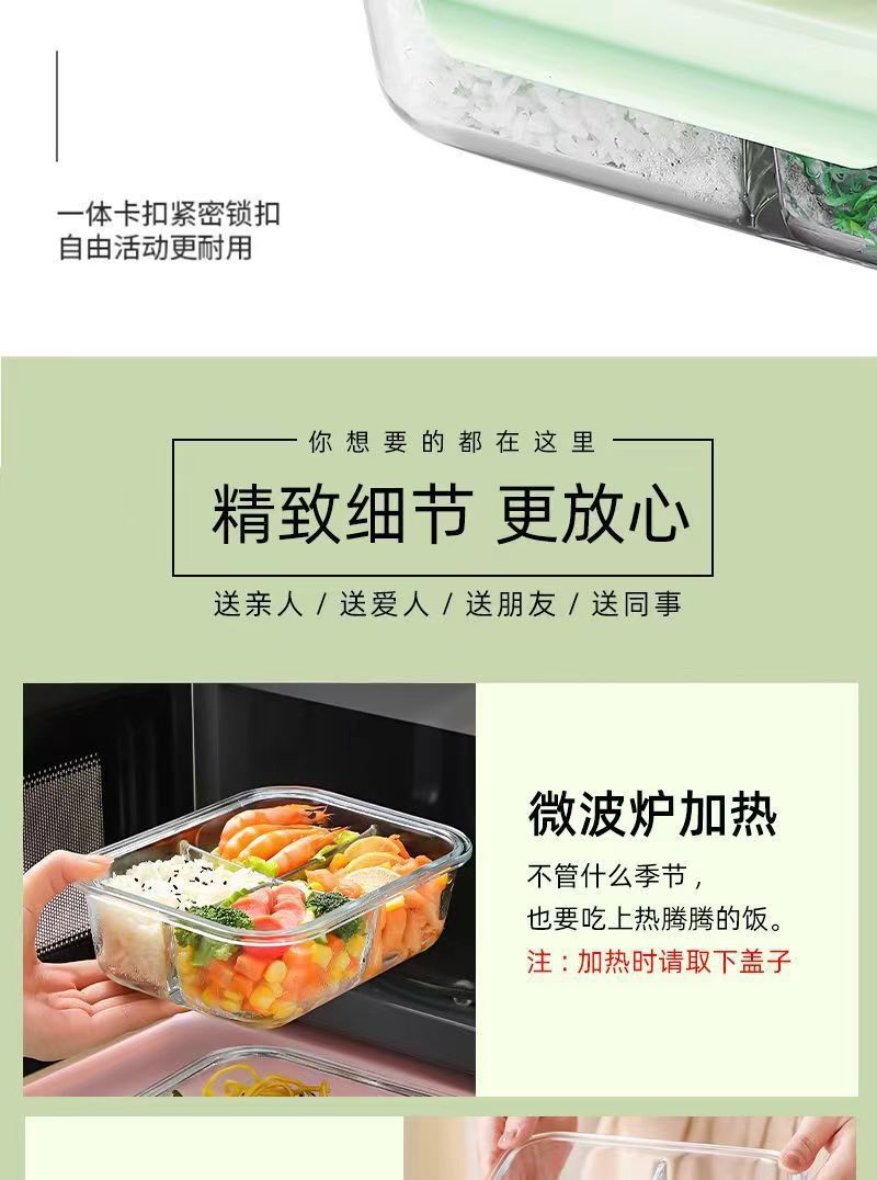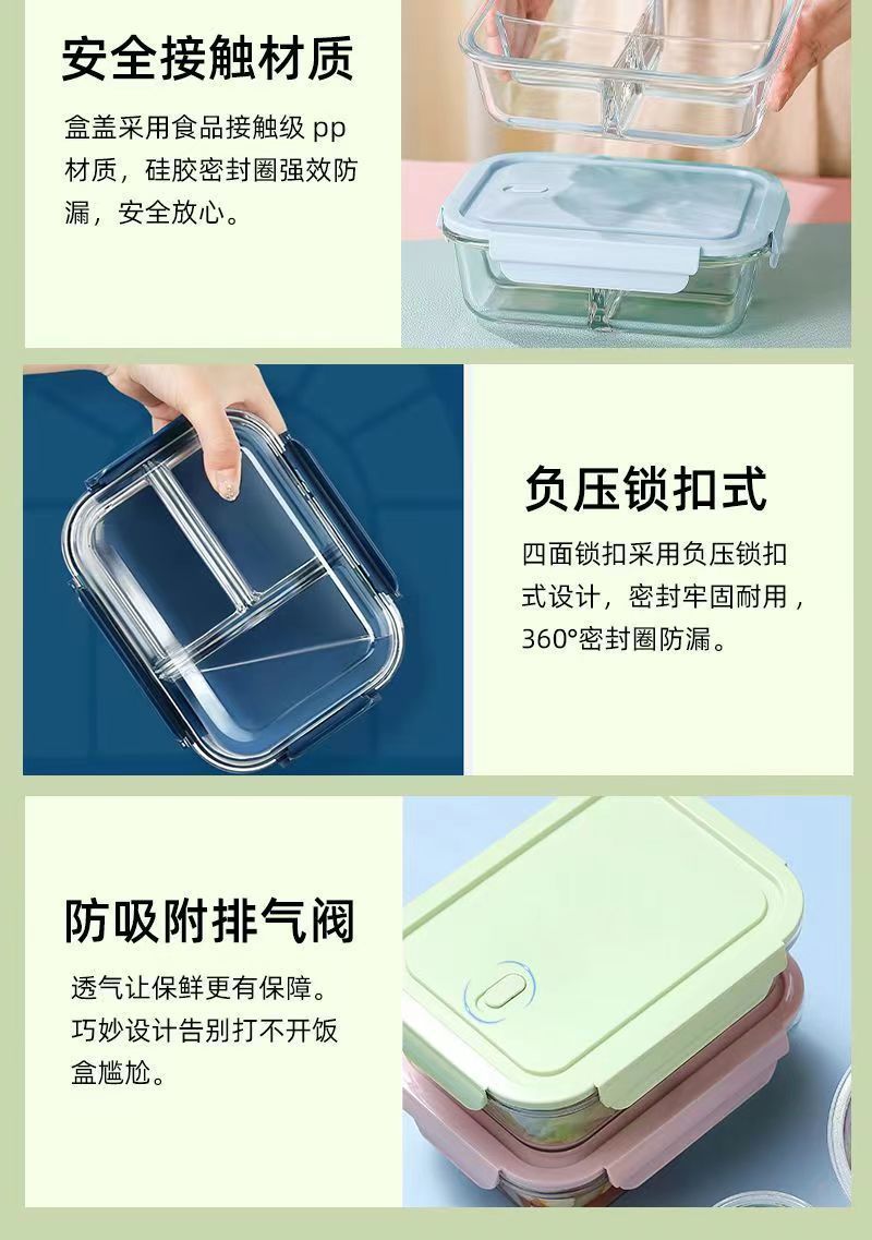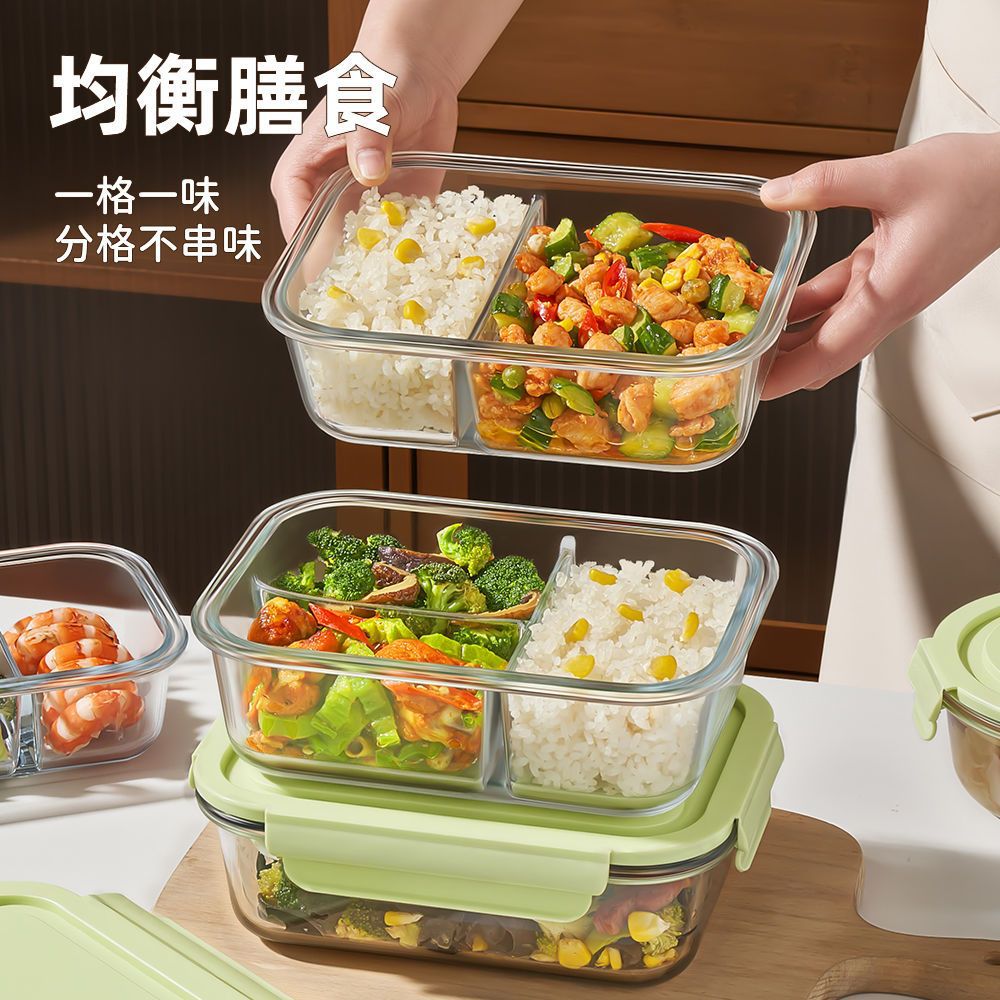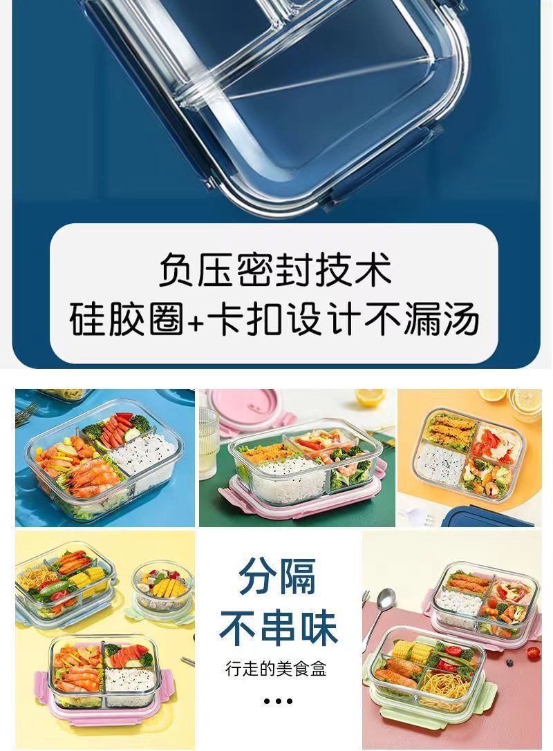 玻璃饭盒可进微波炉上班族透明带盖分隔大容量保鲜盒学生用保鲜盒