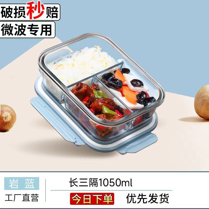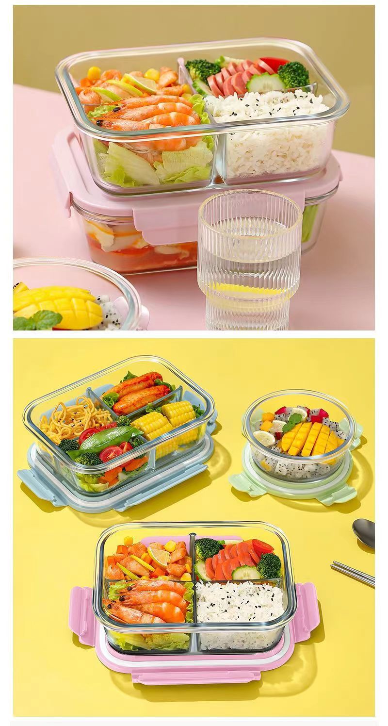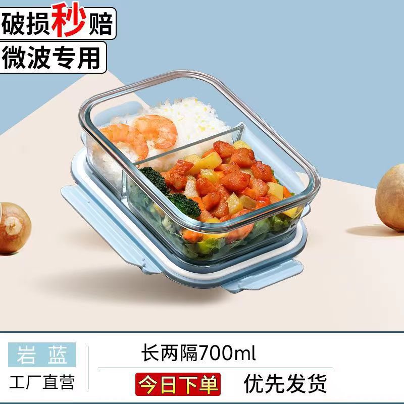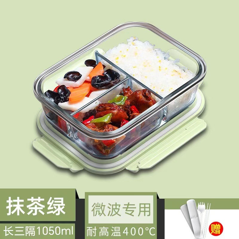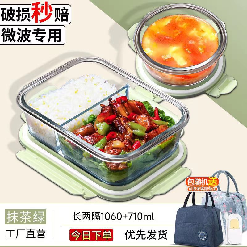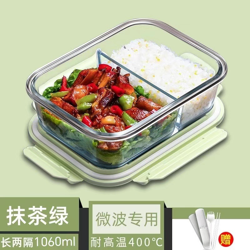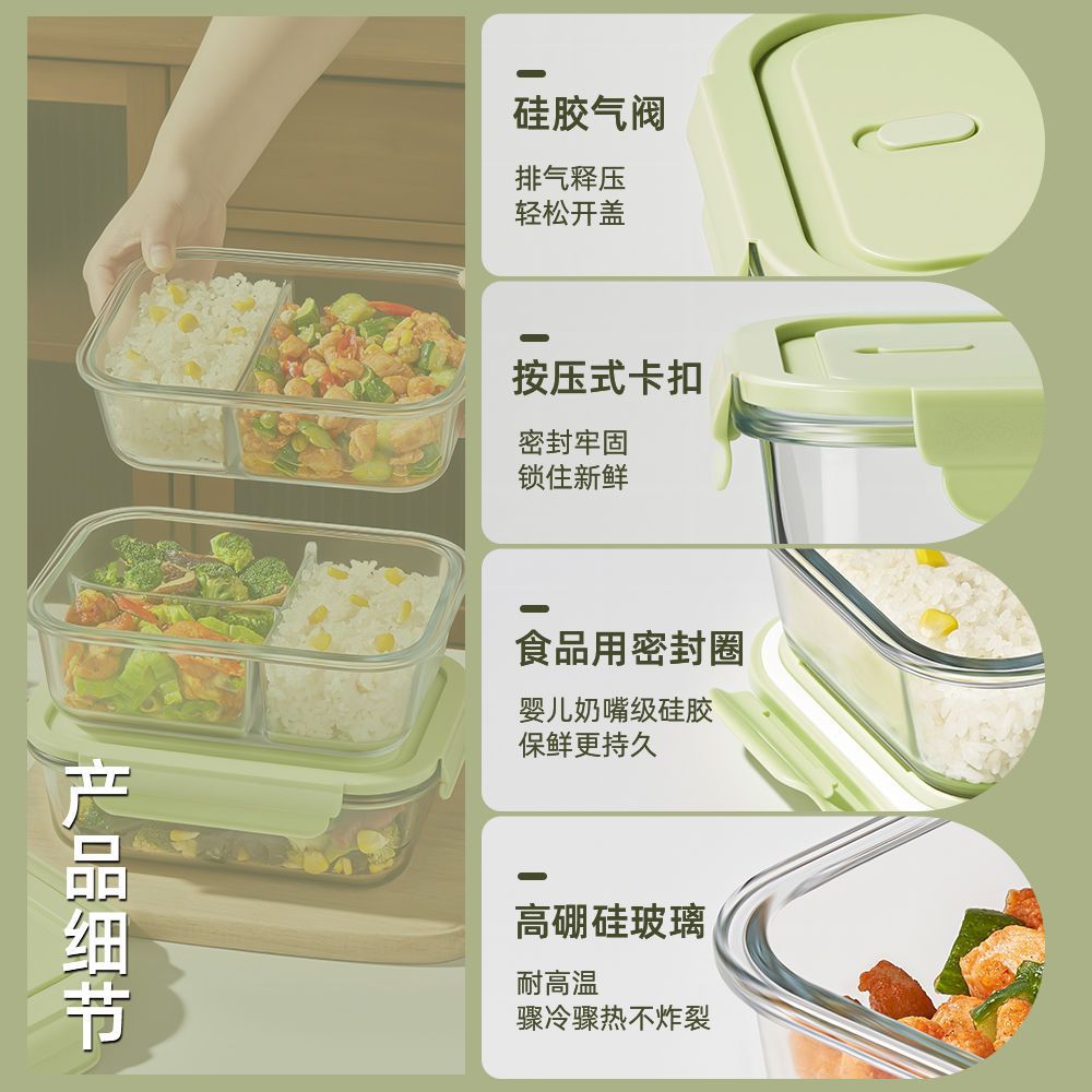 玻璃饭盒可进微波炉上班族透明带盖分隔大容量保鲜盒学生用保鲜盒