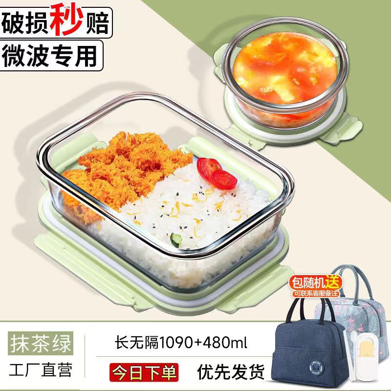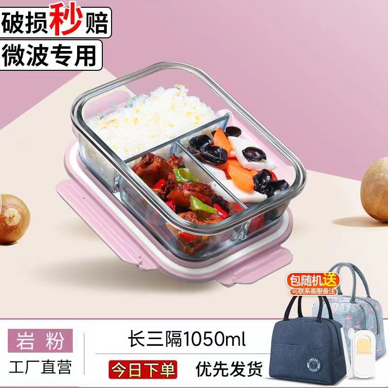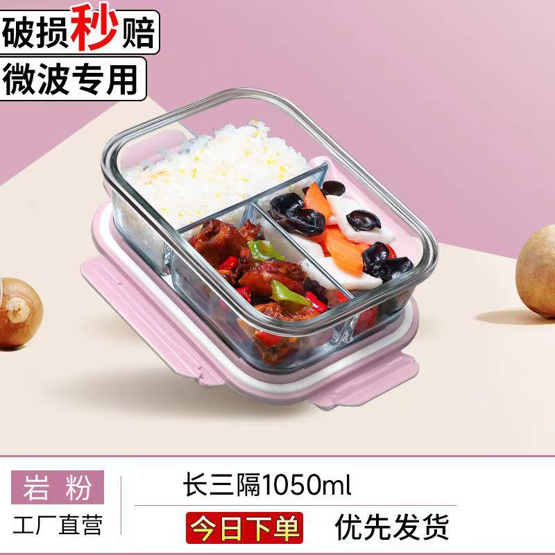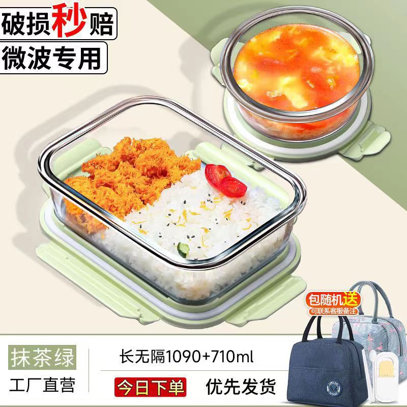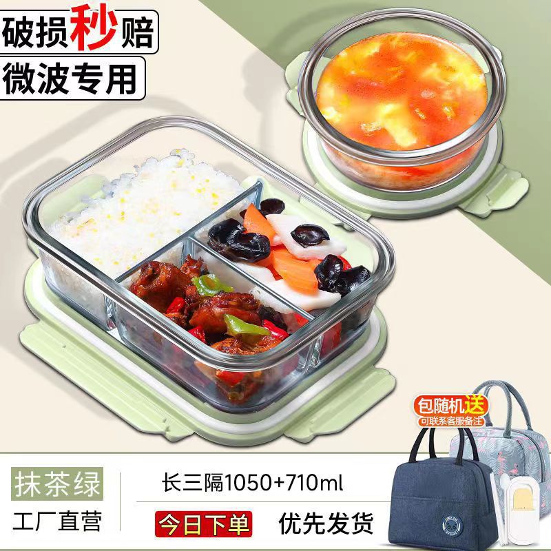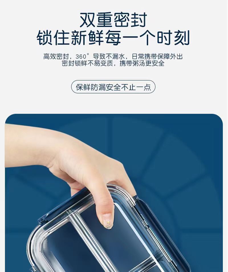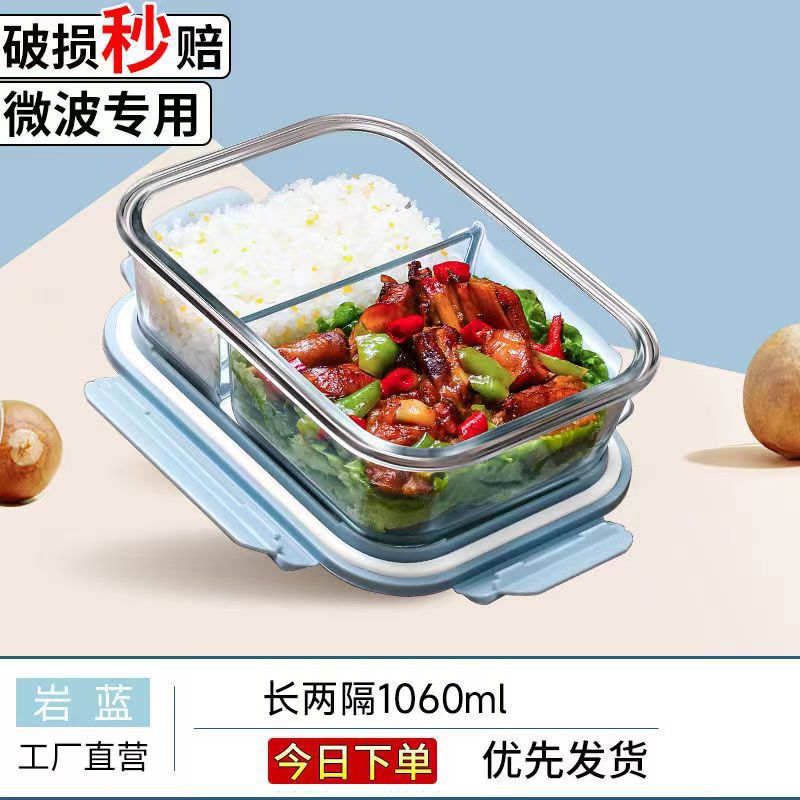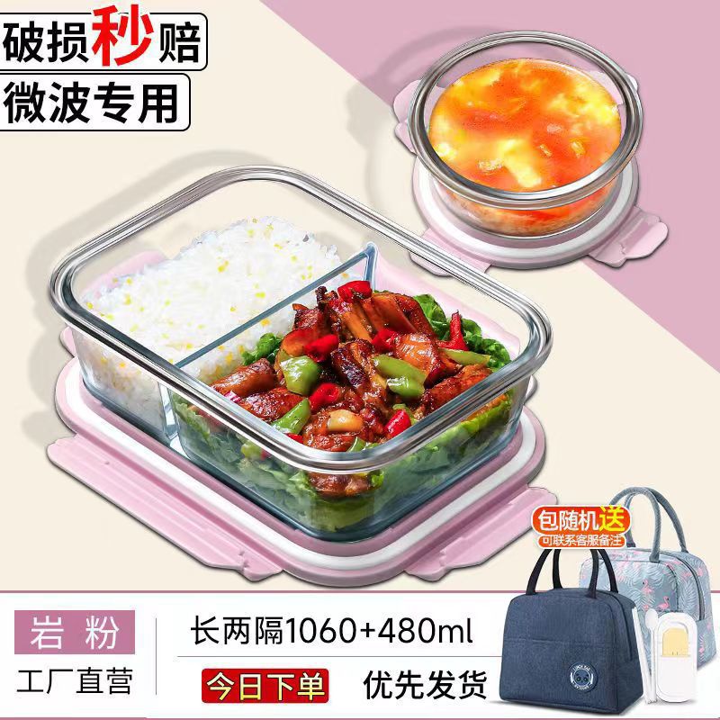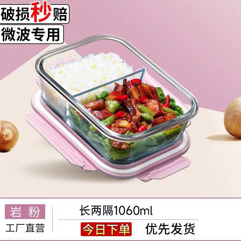 玻璃饭盒可进微波炉上班族透明带盖分隔大容量保鲜盒学生用保鲜盒