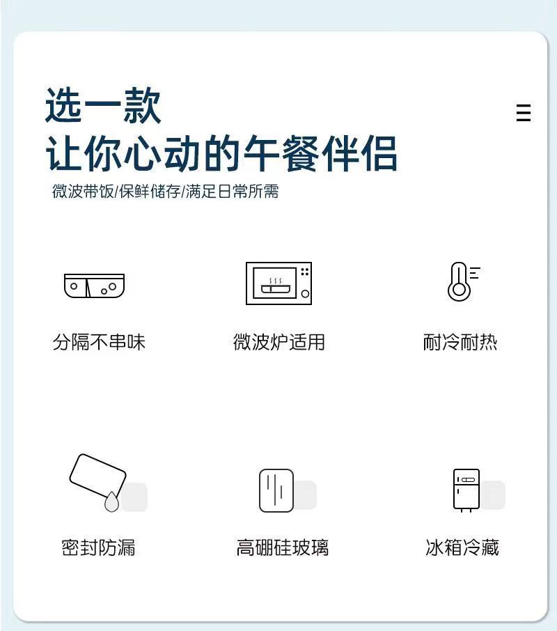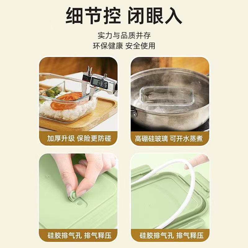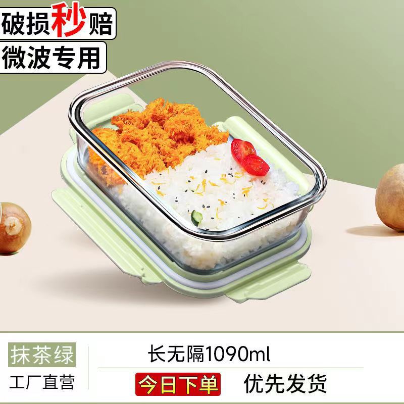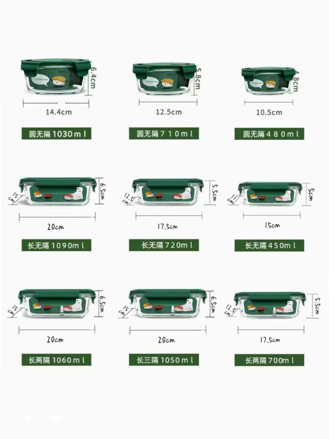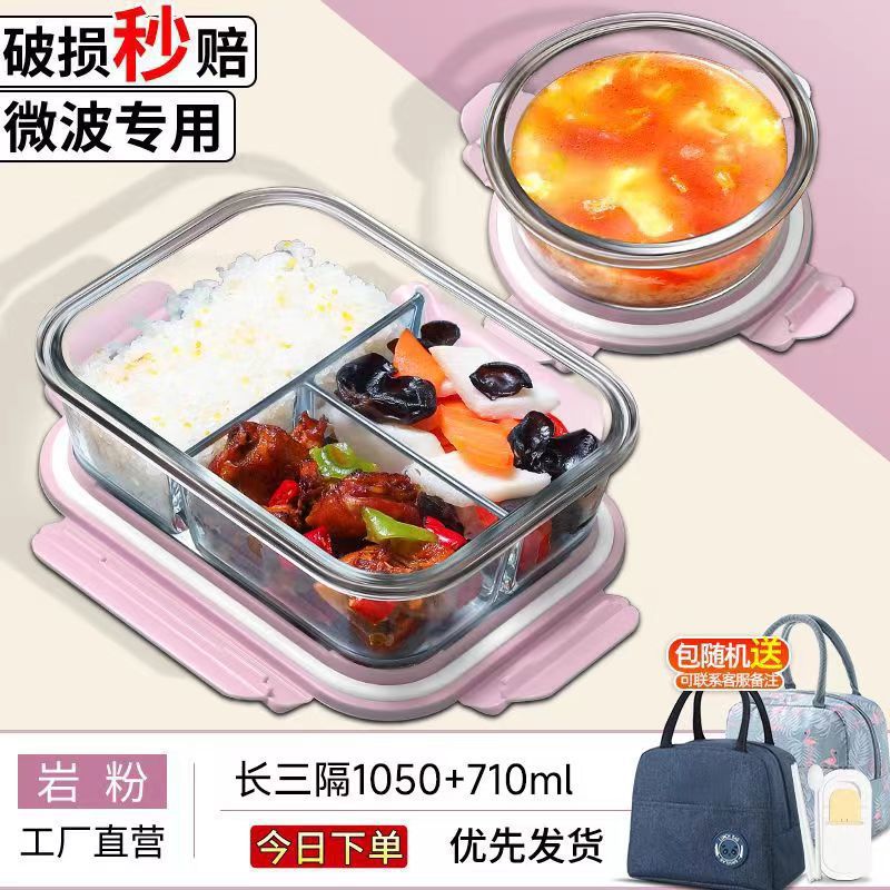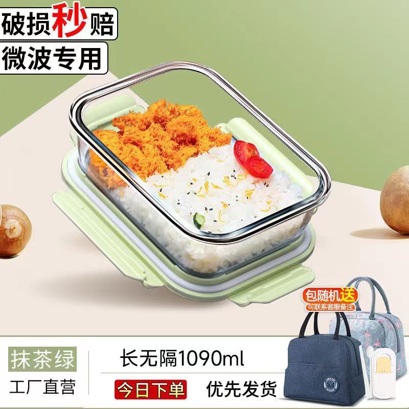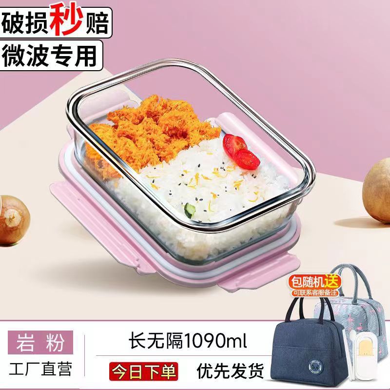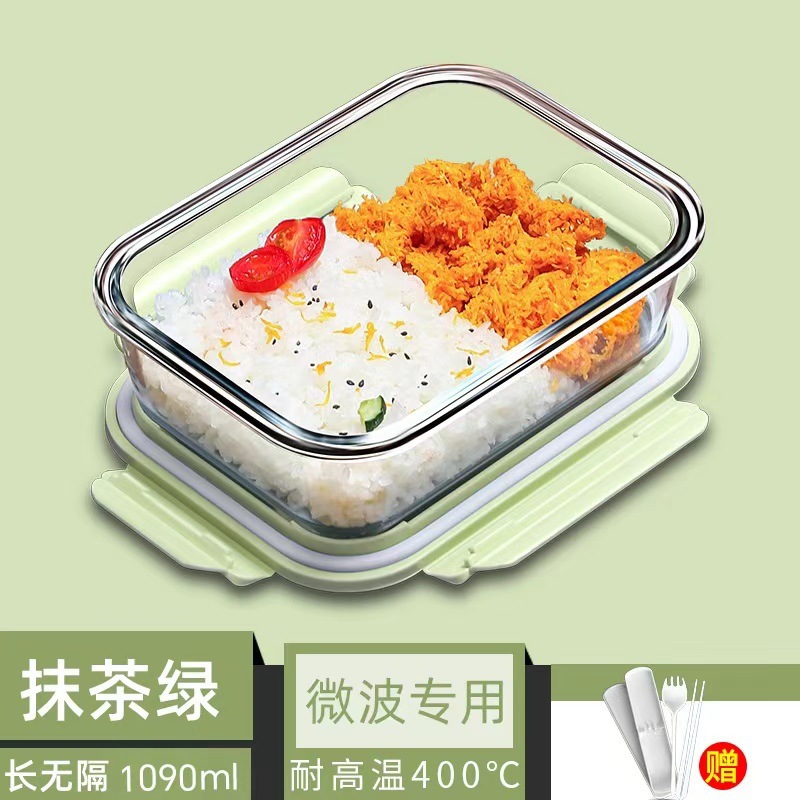 玻璃饭盒可进微波炉上班族透明带盖分隔大容量保鲜盒学生用保鲜盒