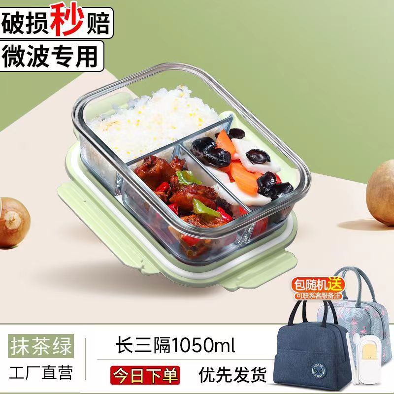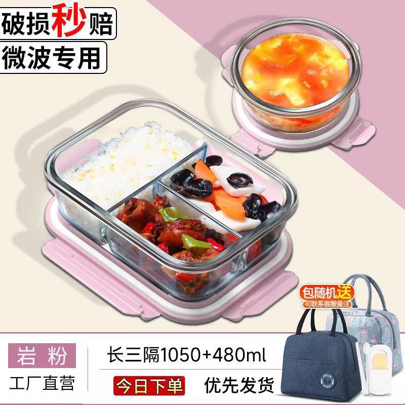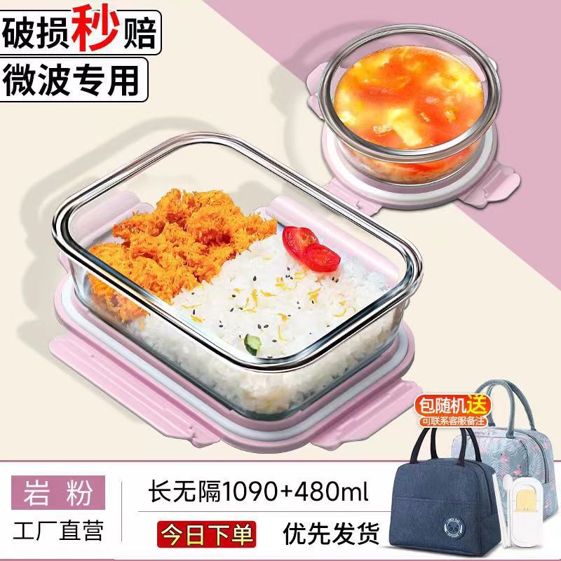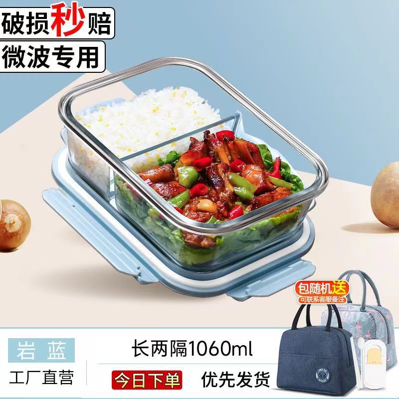 玻璃饭盒可加热微波炉专用上班族带饭带盖餐盒分隔断不串味便当盒