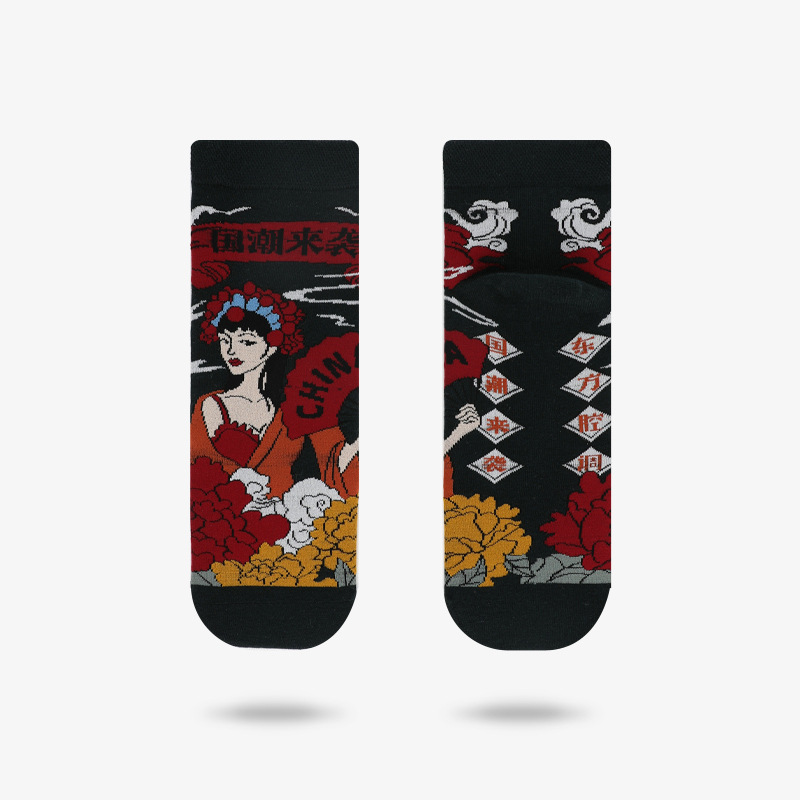 MEIKAN 棉袜子女士卡通船袜长筒筒袜薄款春夏国潮民族风袜子