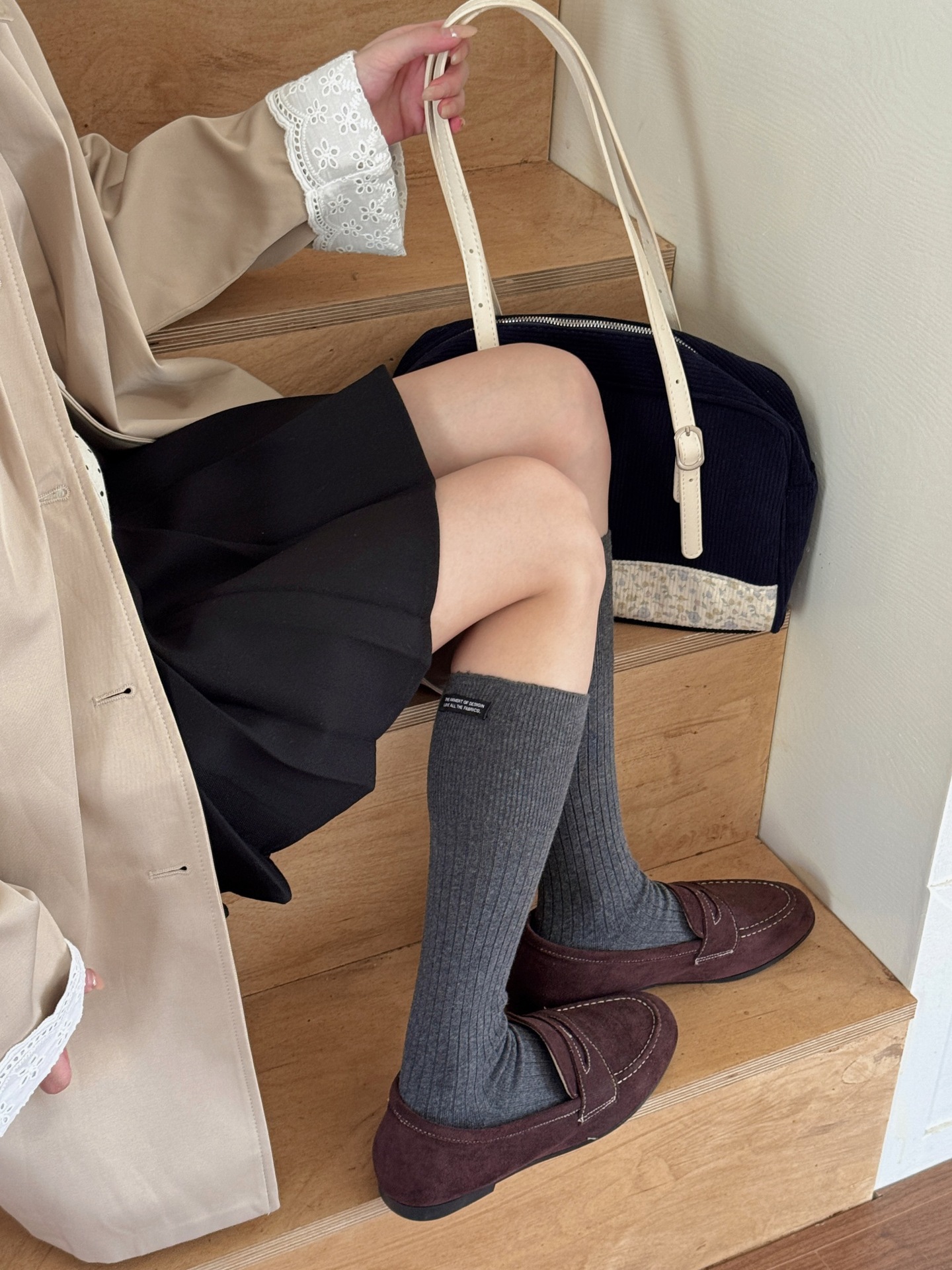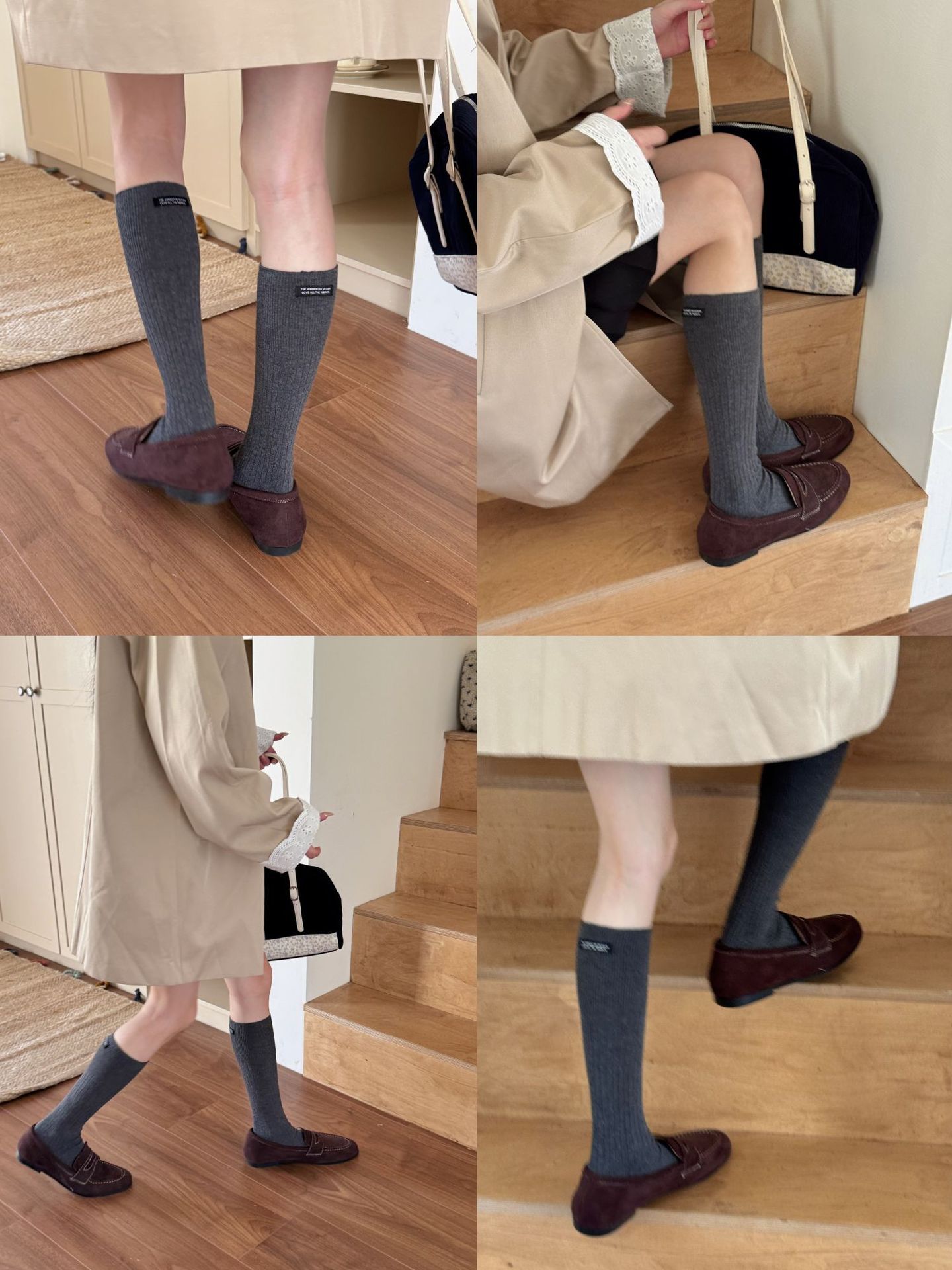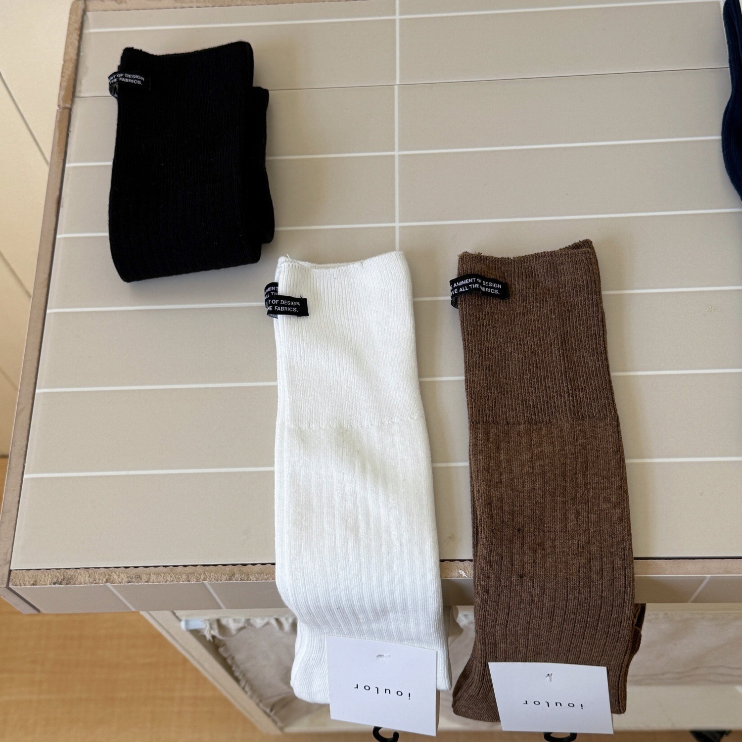 IOULOR秋冬韩系小腿袜带字母标休闲纯色有氧棉堆堆袜诸暨袜子批发