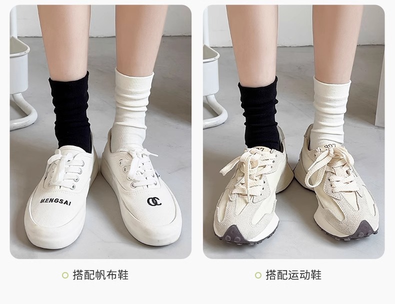 白色堆堆袜子女夏季款中筒袜棉袜配小皮鞋春夏无骨袜黑色月子长袜