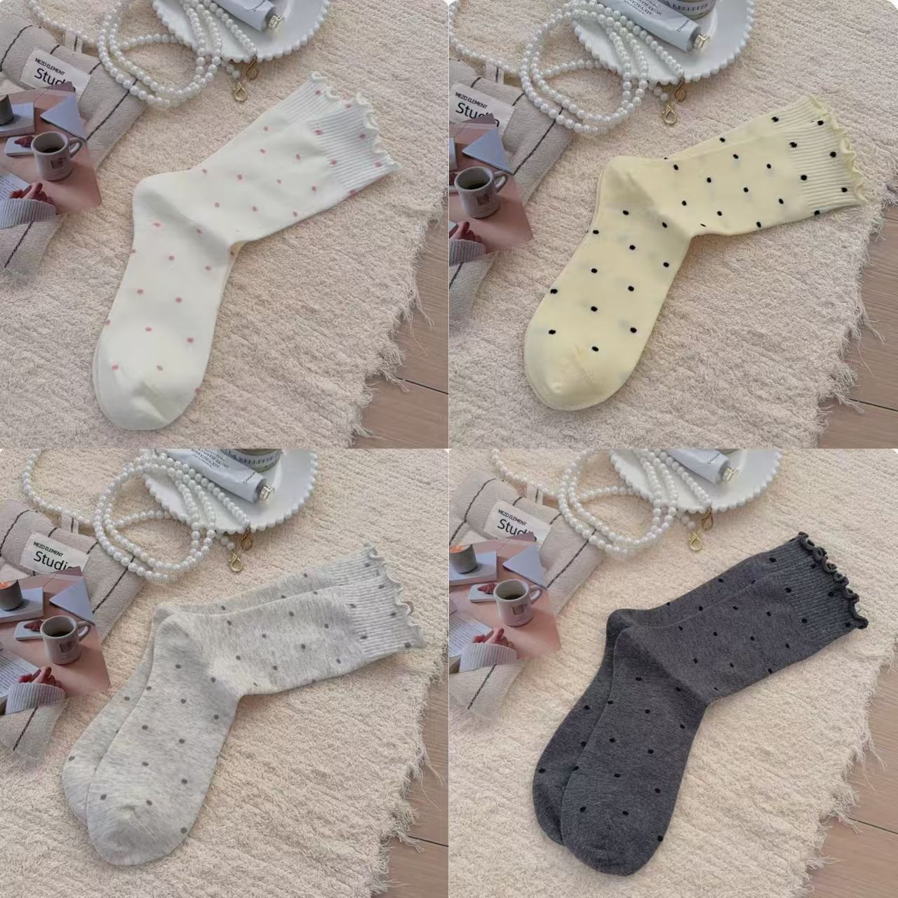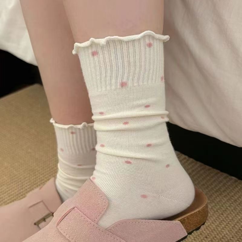 木耳边波点堆堆袜子女中筒袜ins潮春秋日系芭蕾风秋冬长袜