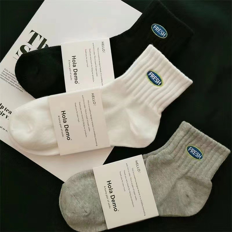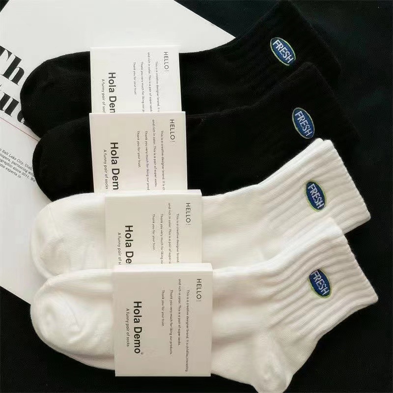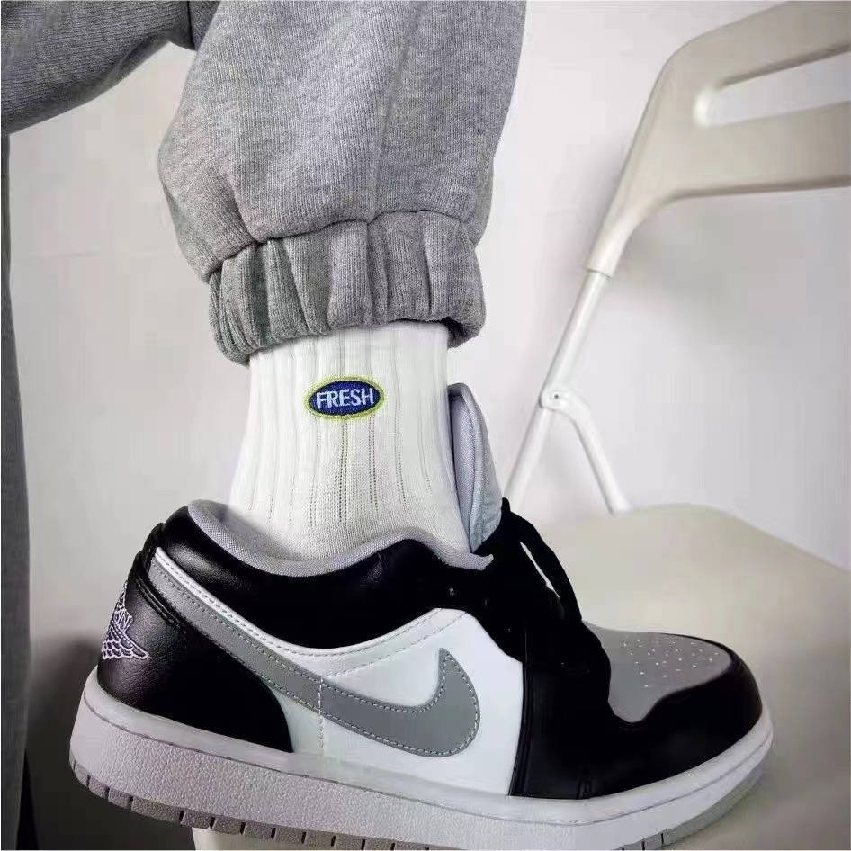 袜子男春夏中短筒袜棉透气男女袜子潮流ins字母防臭白色运动袜