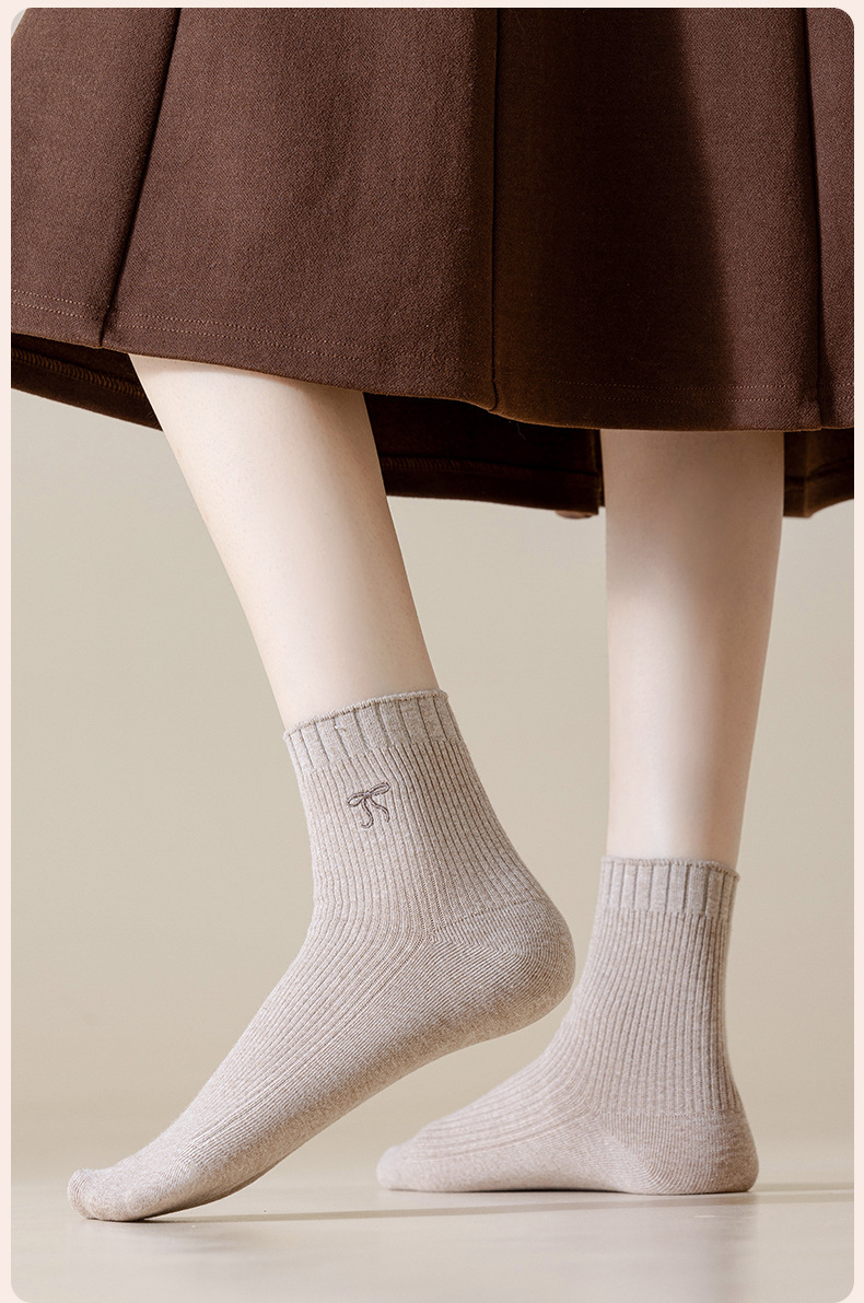 袜子女秋冬季新品女士蝴蝶结中筒袜吸汗透气ins简约百搭诸暨袜业