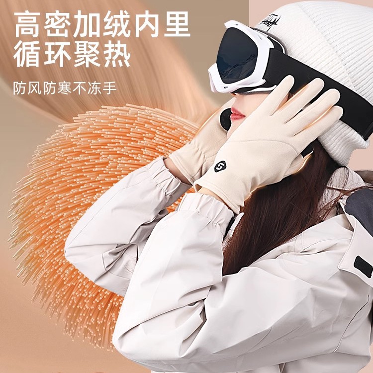 滑雪内胆手套女士秋冬加绒防风防寒保暖手套骑车内衬冬季保暖手套