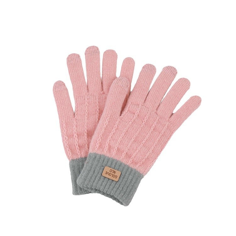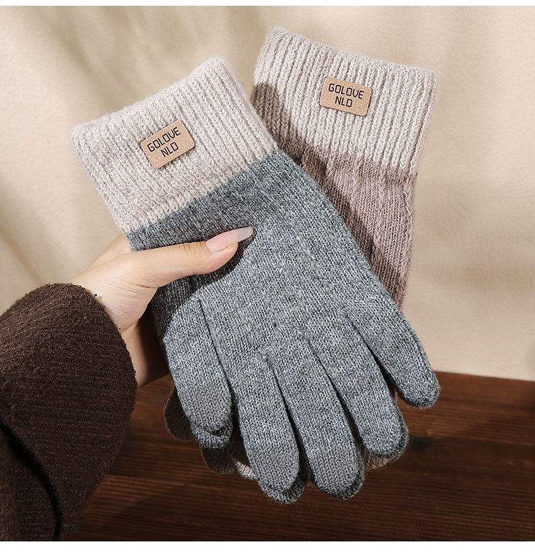 跨境冬季保暖毛线防风成人加绒加厚五指触屏针织防寒骑车户外手套