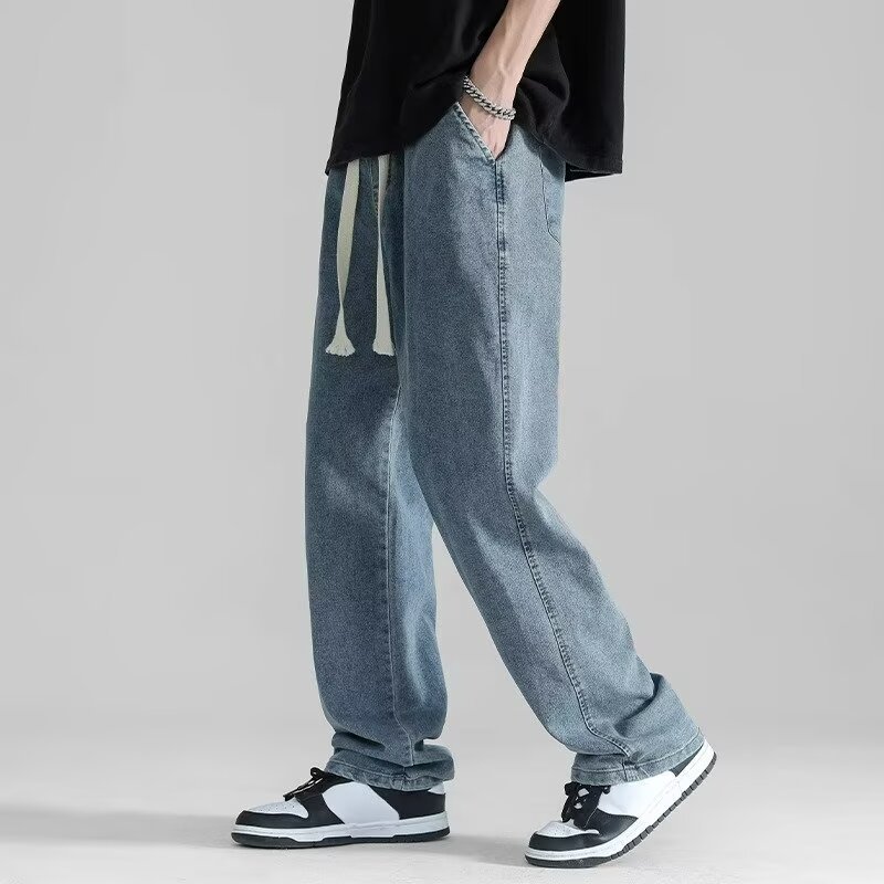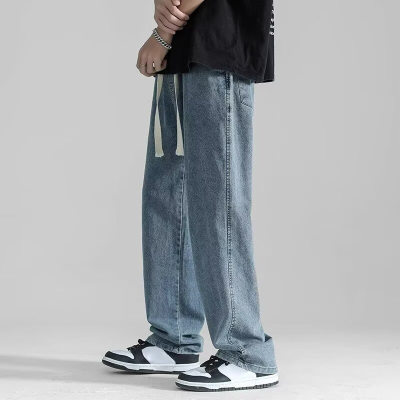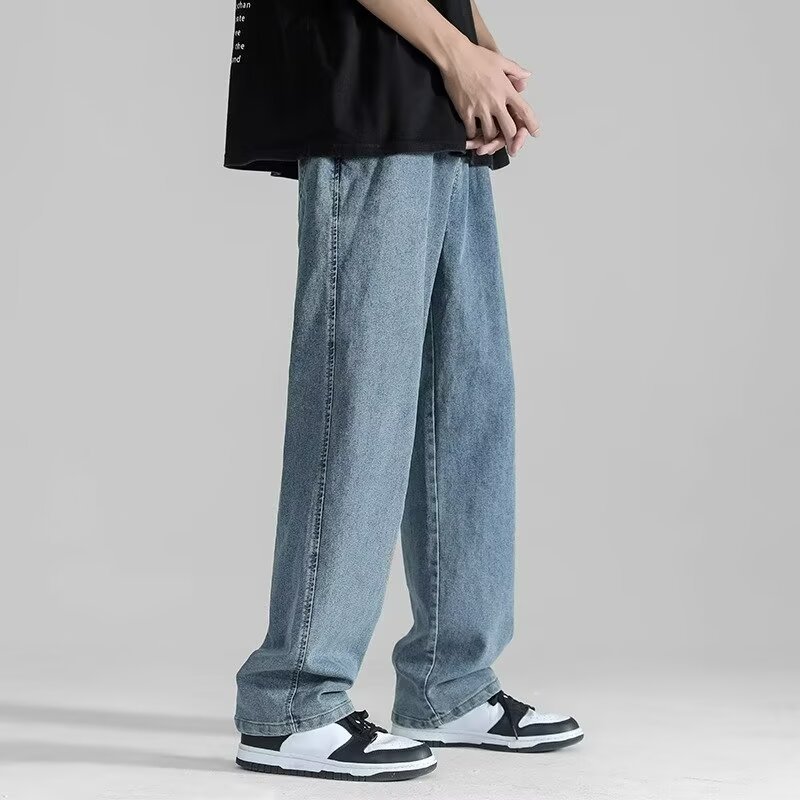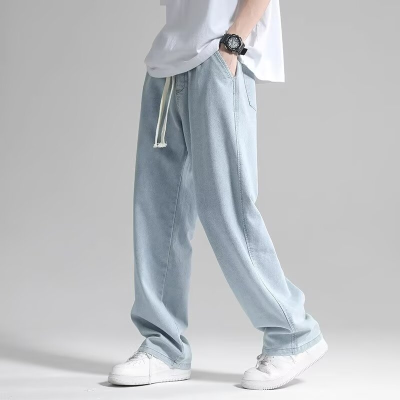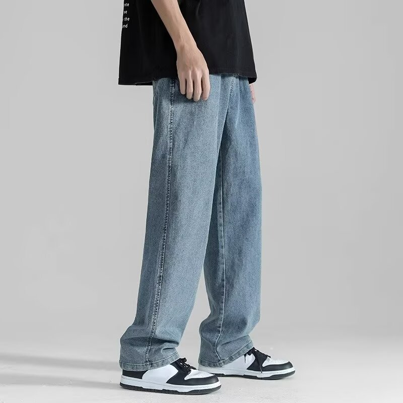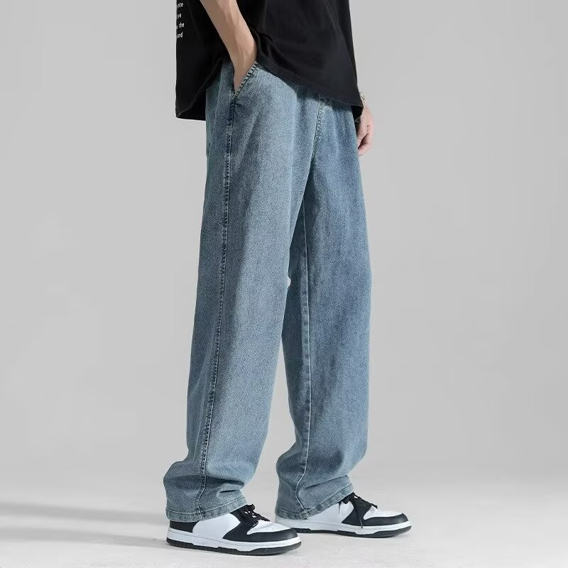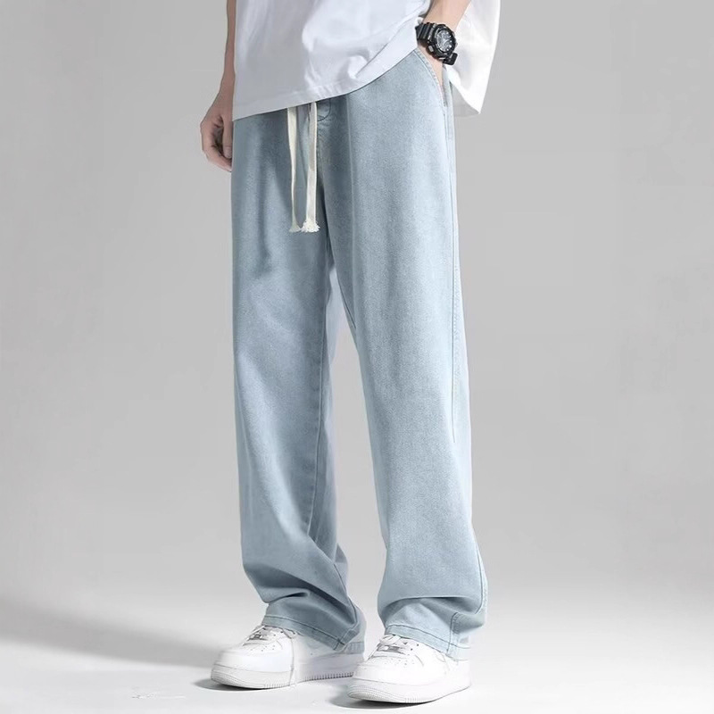 直筒牛仔裤男夏季新款薄款潮牌宽松坠感阔腿垂感拖地长裤休闲裤子