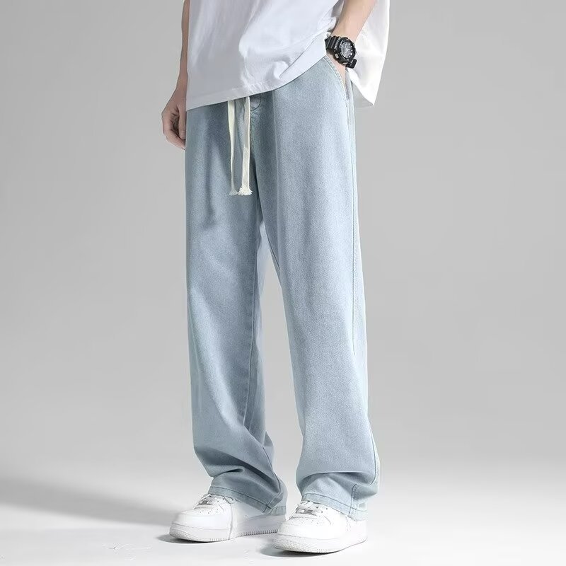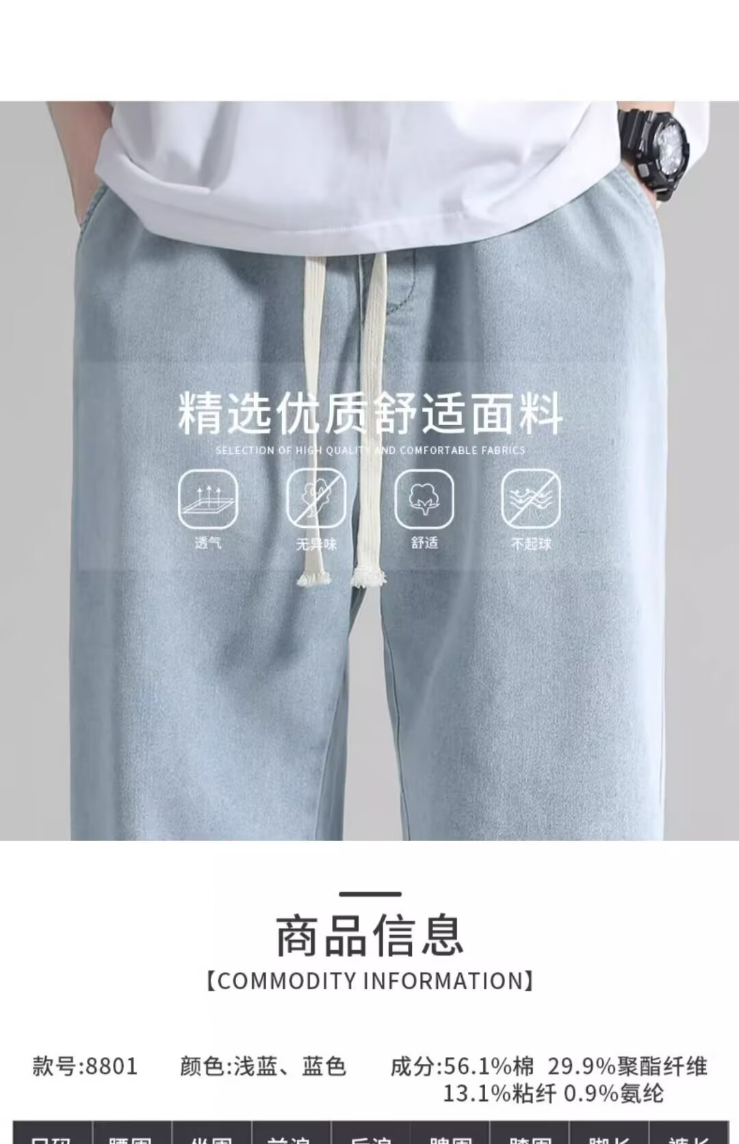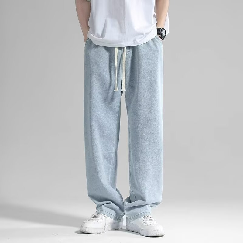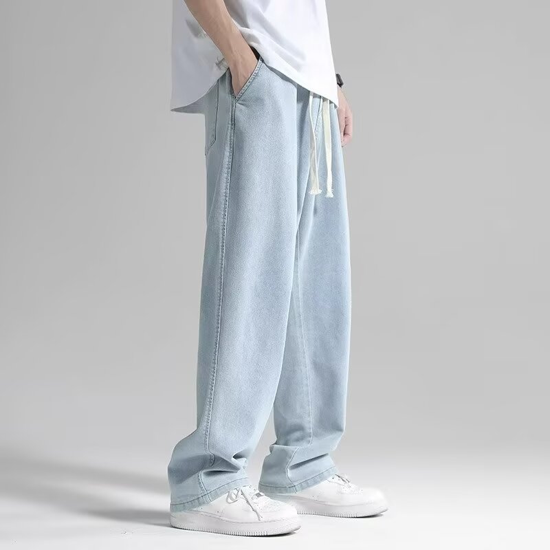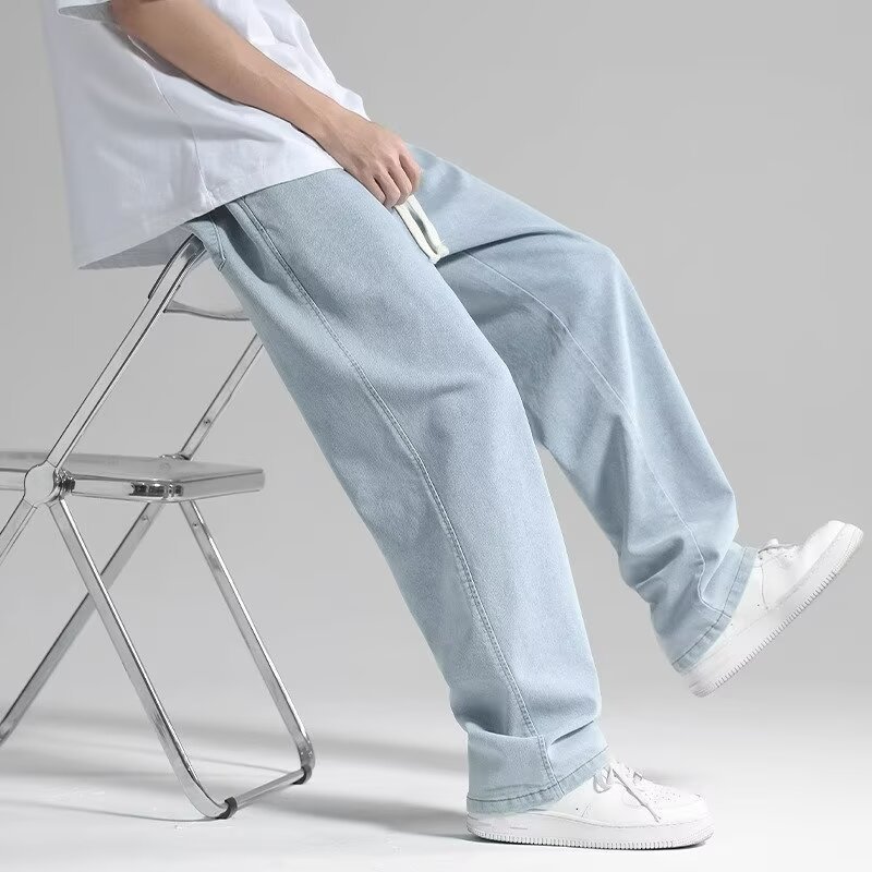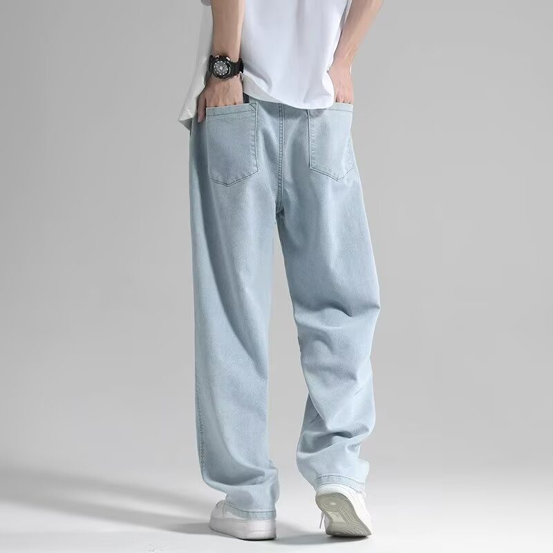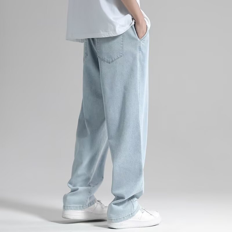 直筒牛仔裤男夏季新款薄款潮牌宽松坠感阔腿垂感拖地长裤休闲裤子