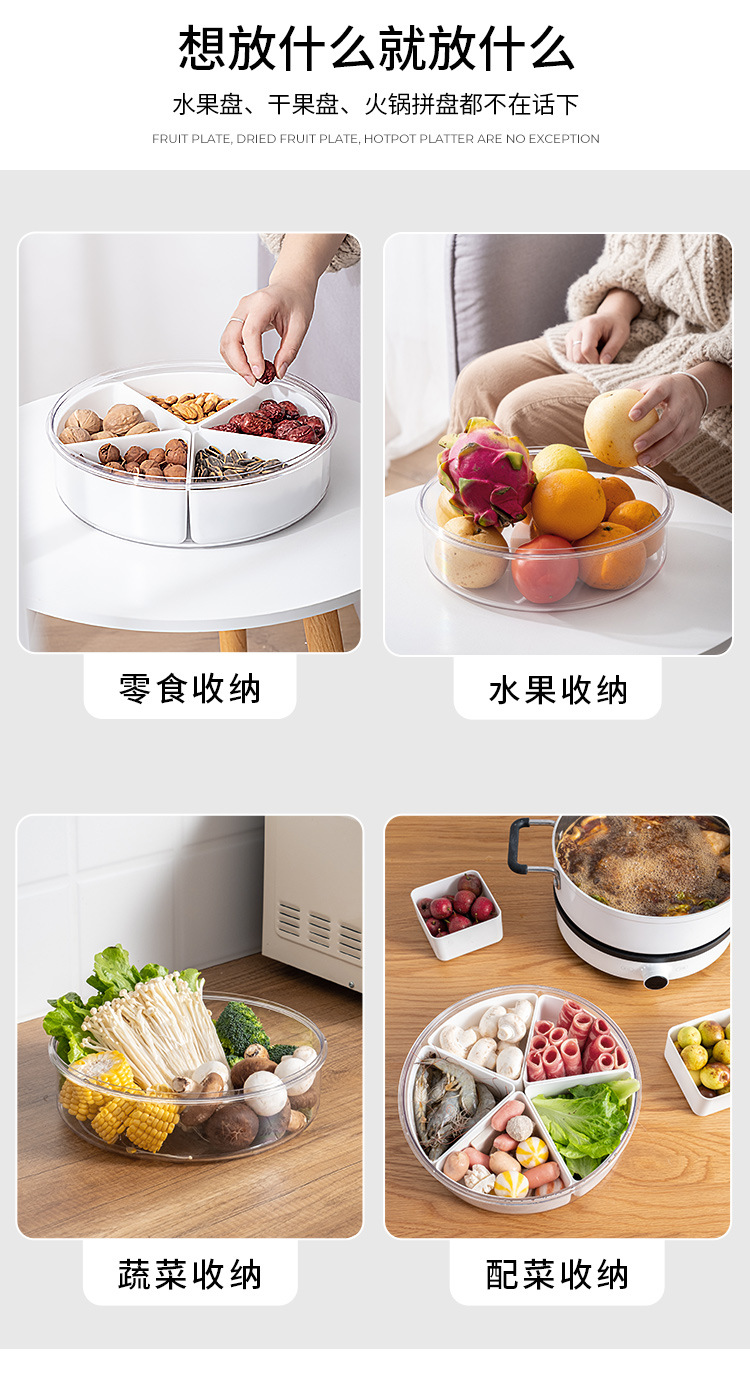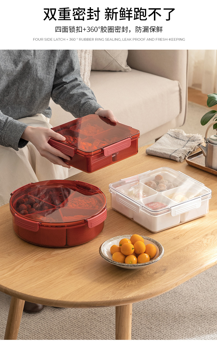 果盘高级感水果盘干果盘带盖密封分格水果果盘客厅零食收纳点心盘