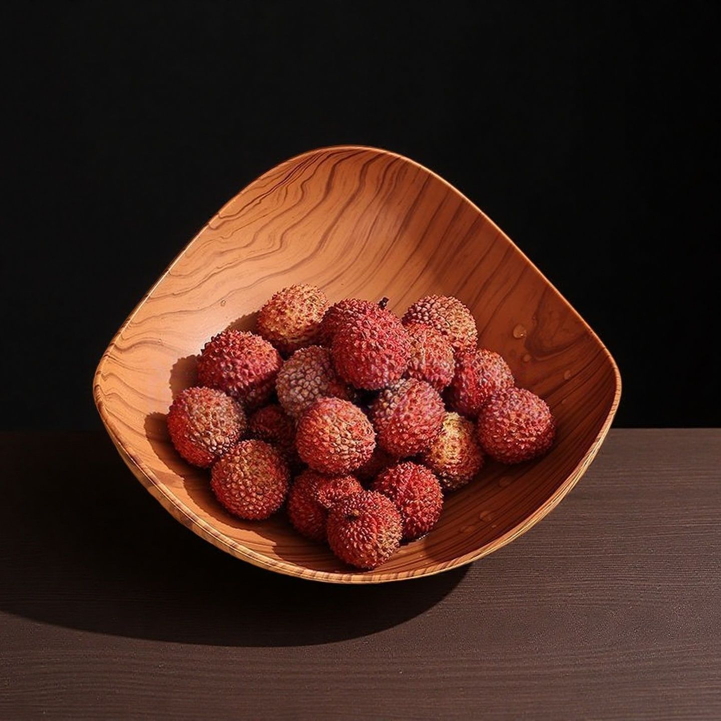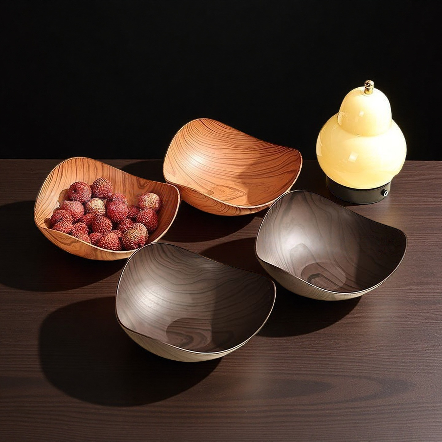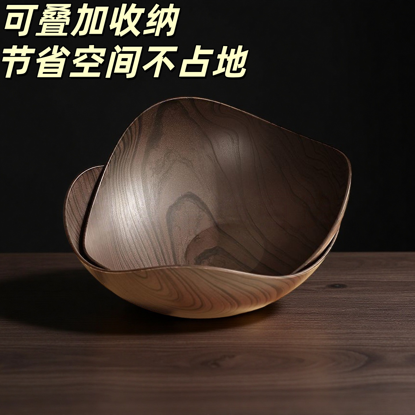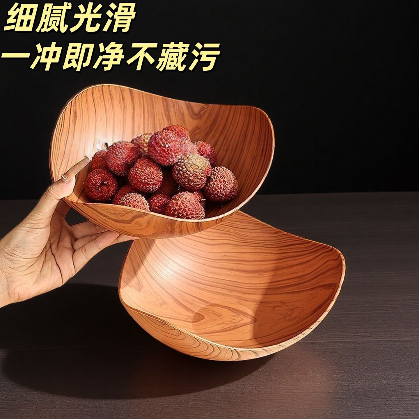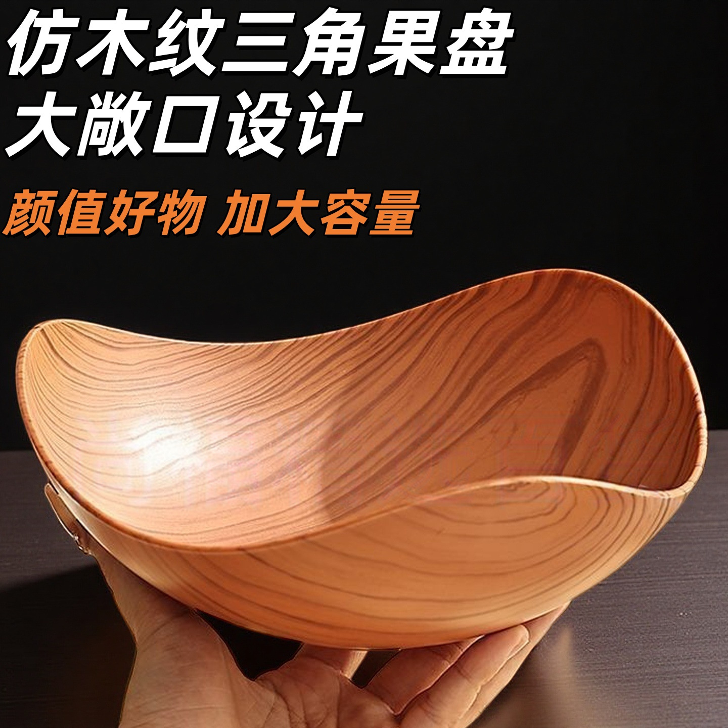中式仿木纹三角水果盘客厅家用零食干果摆放盘高颜值糖果三角碗