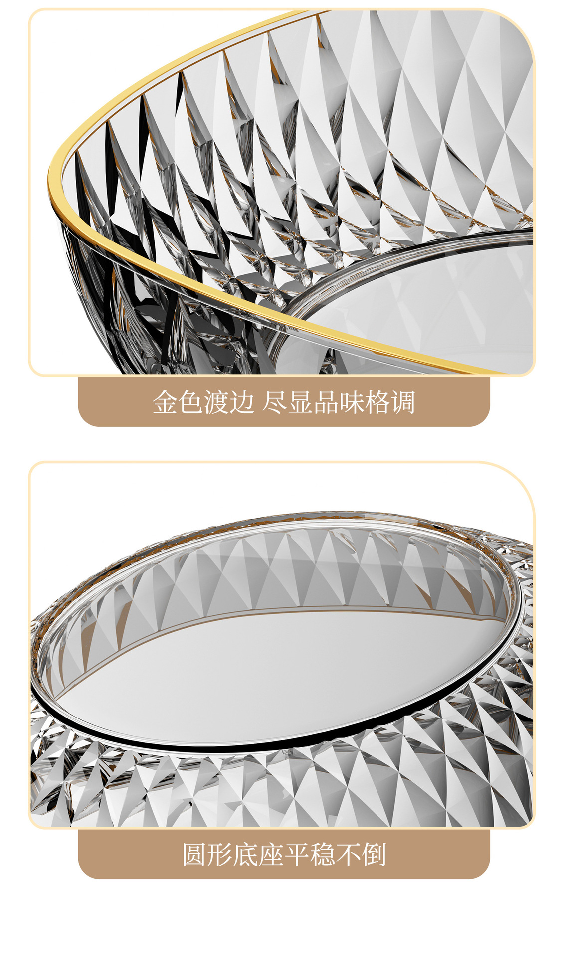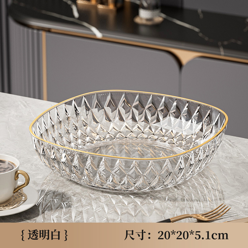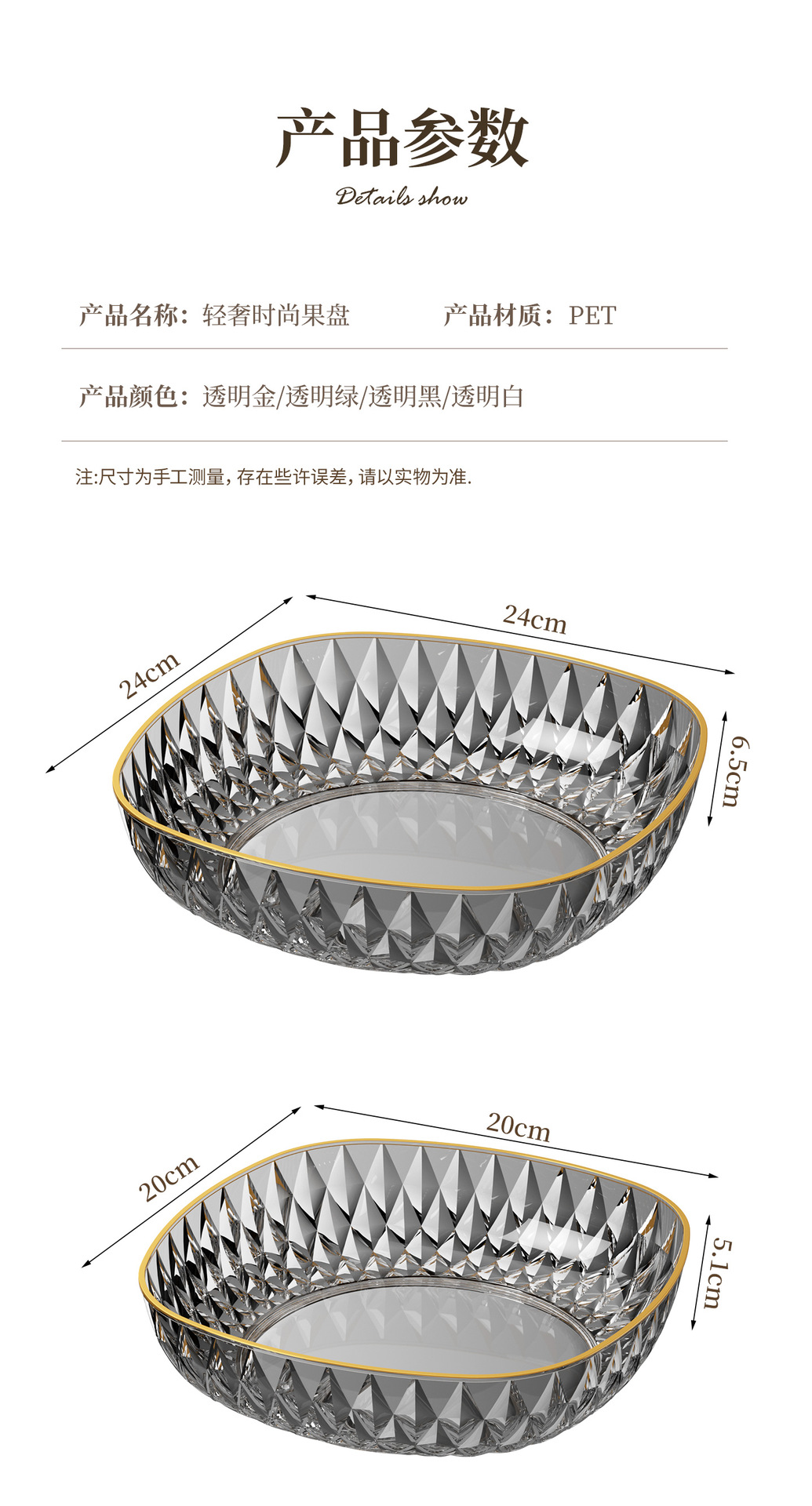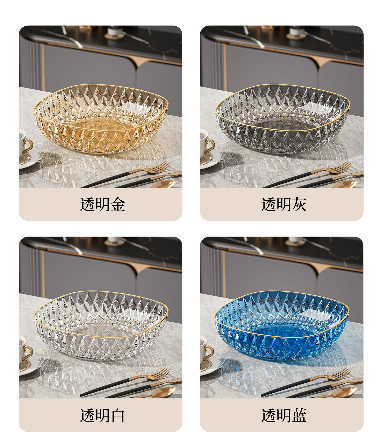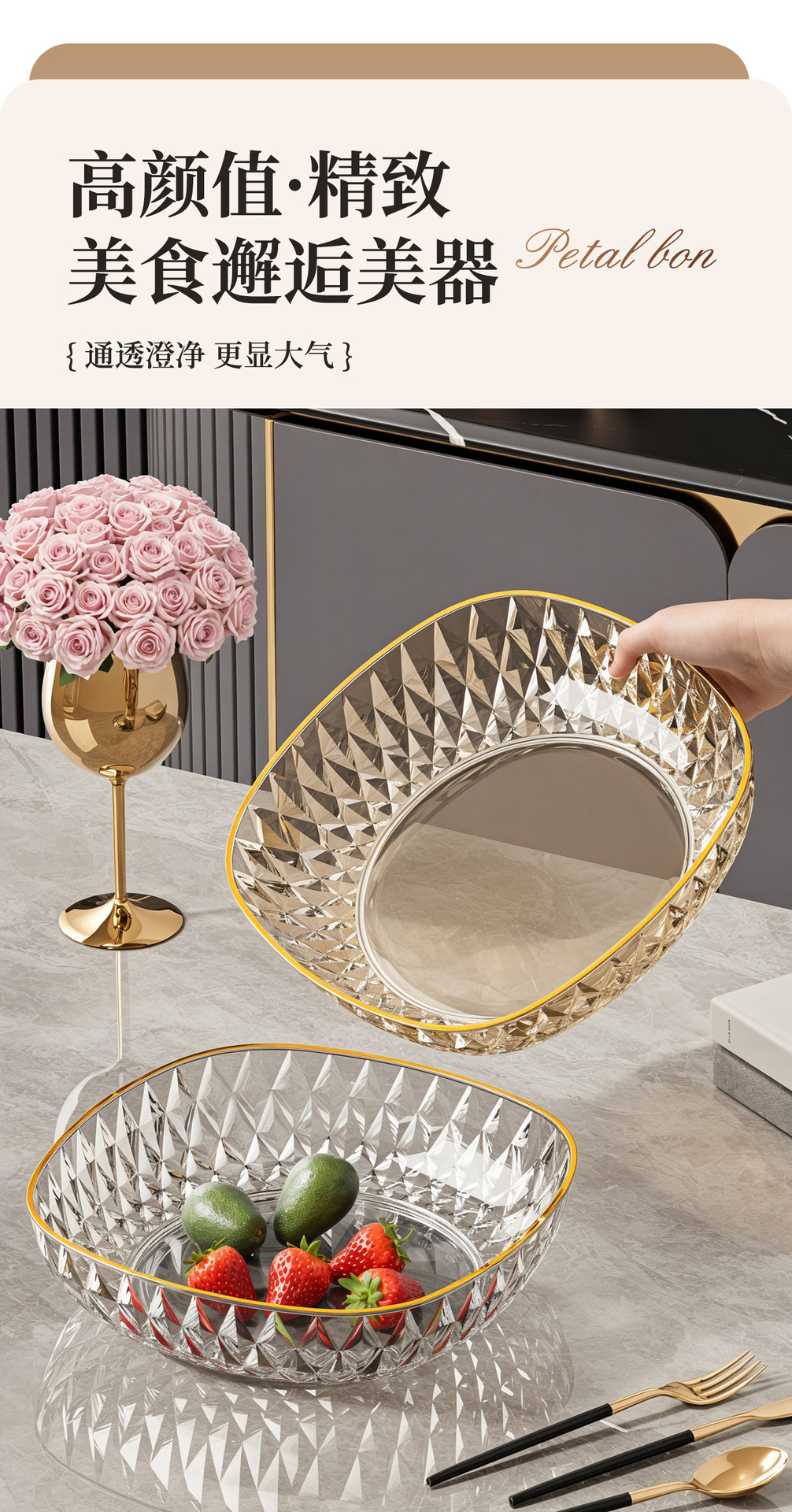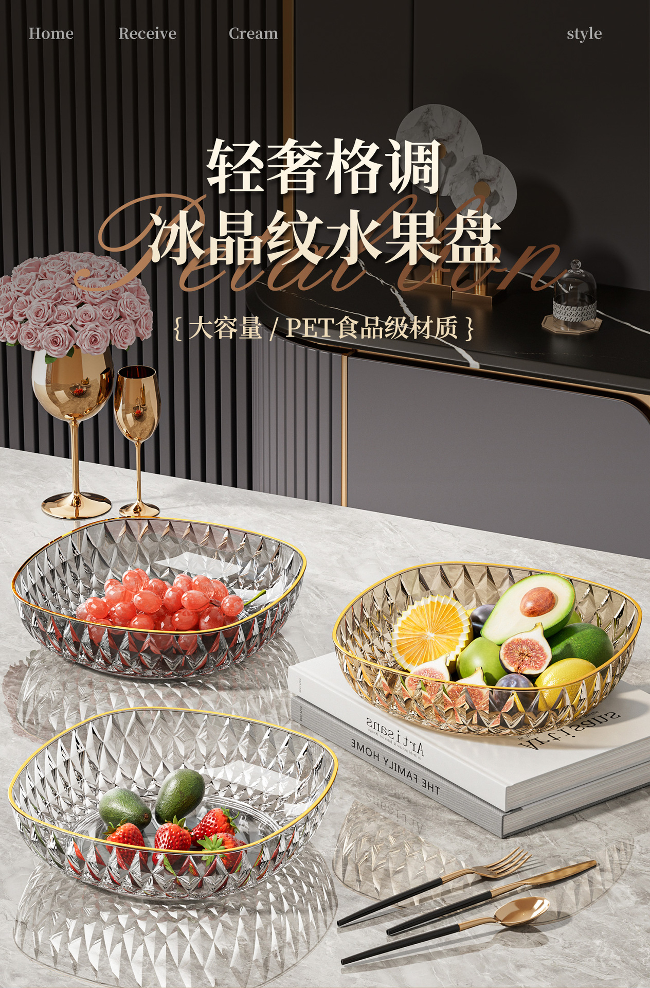 跨境水果盘子高颜值批发ins轻奢透明耐摔大容量家用客厅装坚果盘
