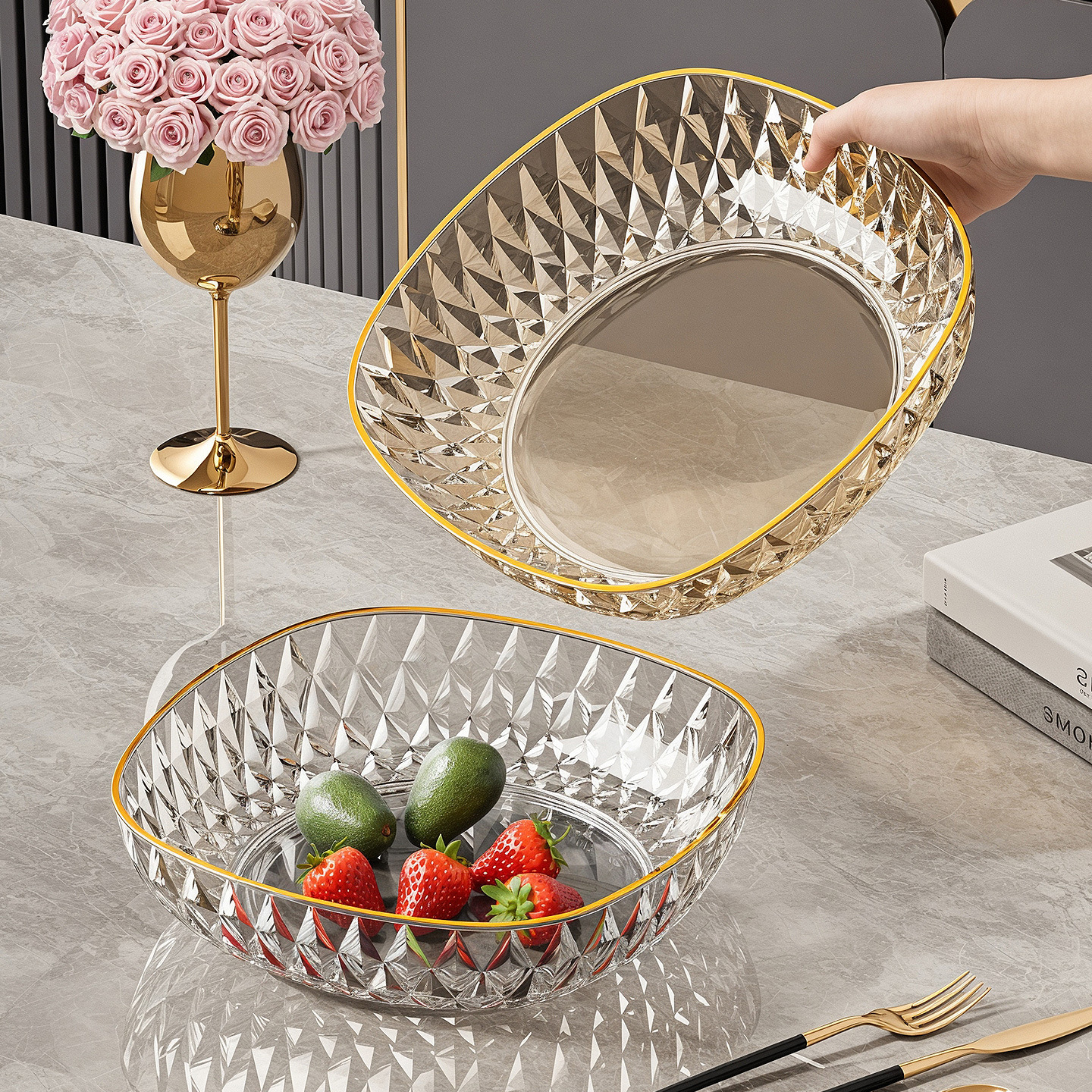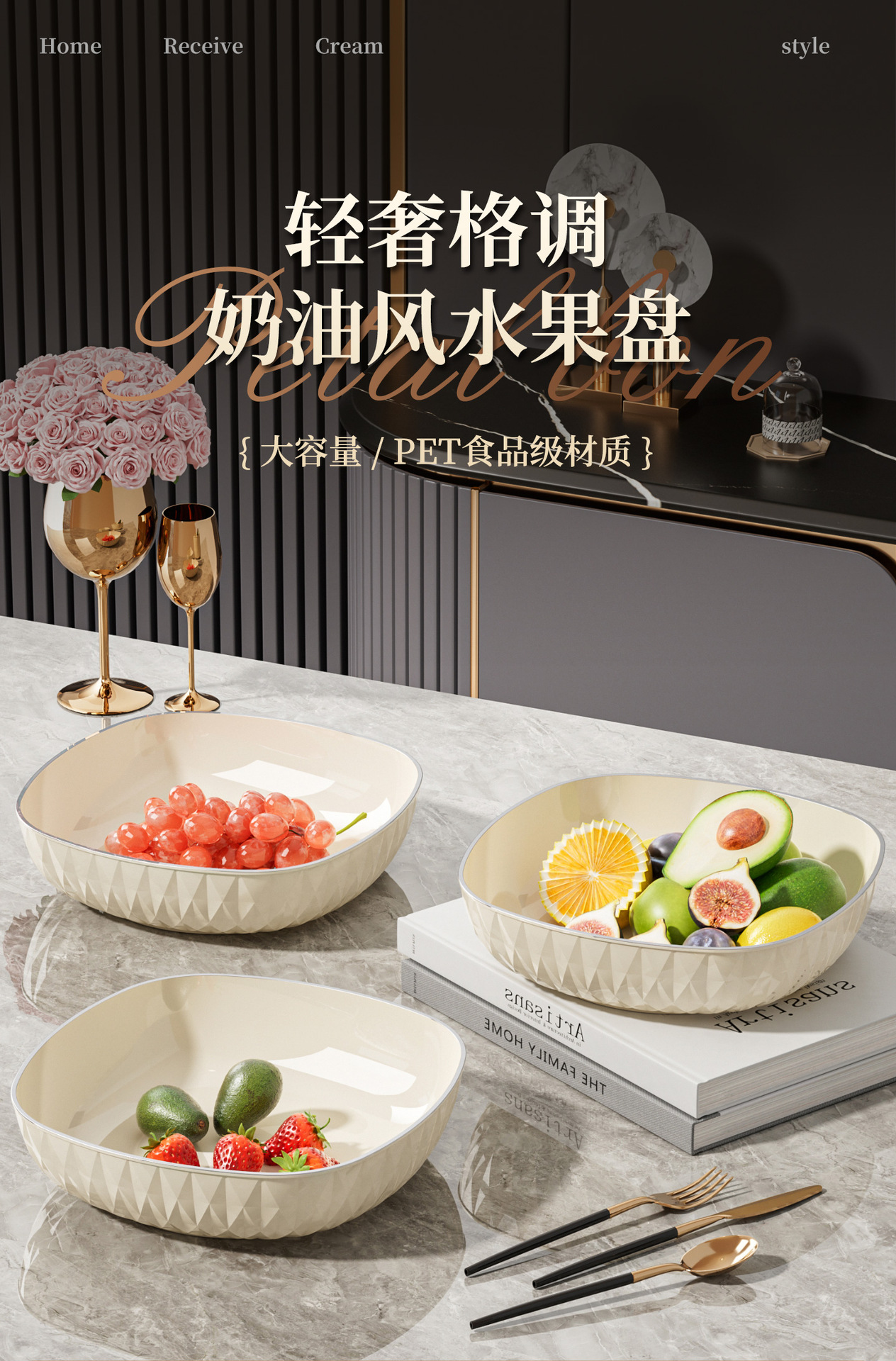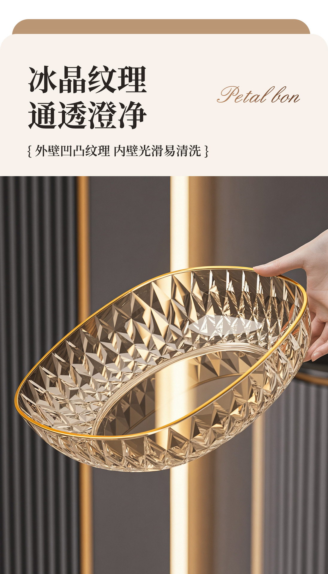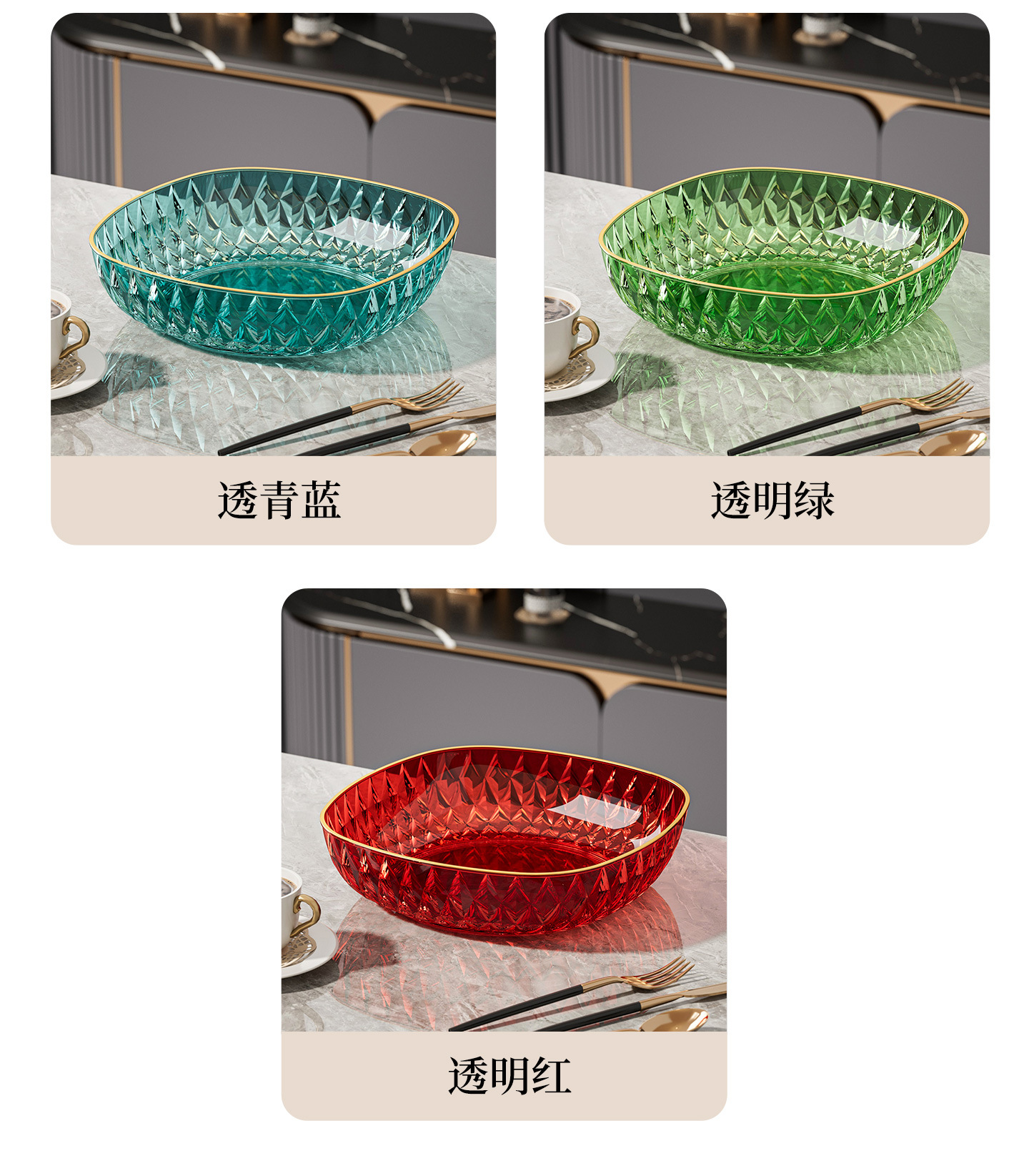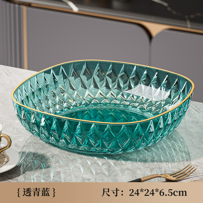 跨境水果盘子高颜值批发ins轻奢透明耐摔大容量家用客厅装坚果盘