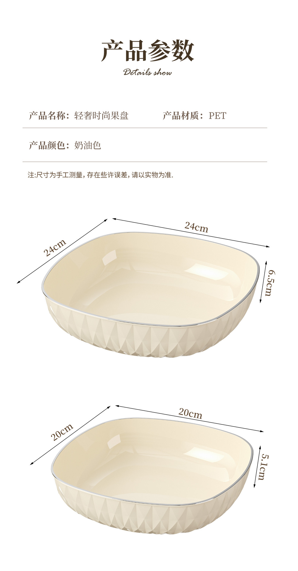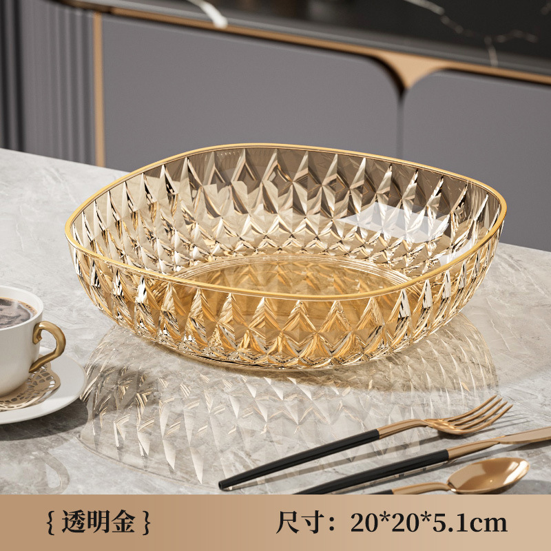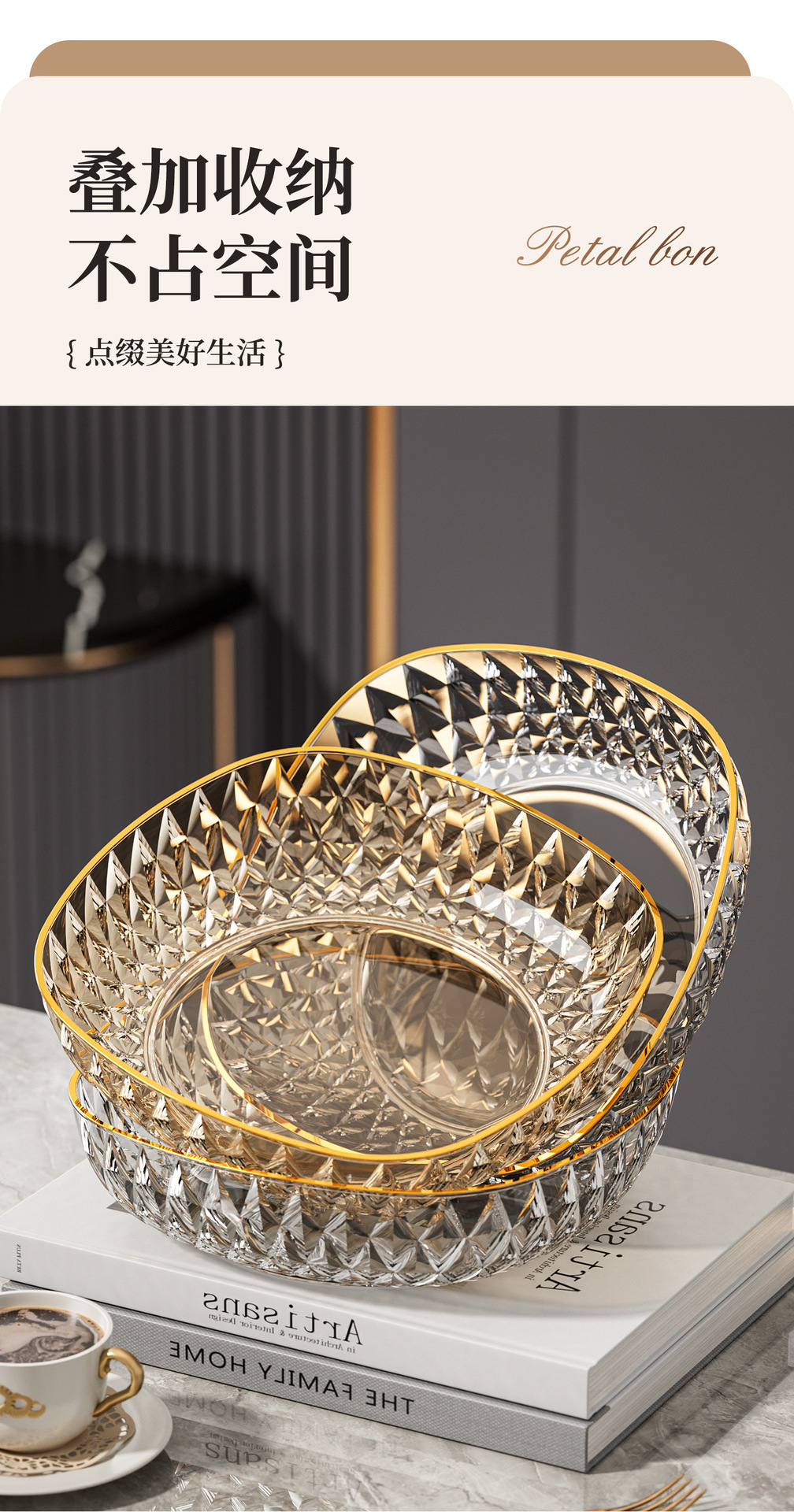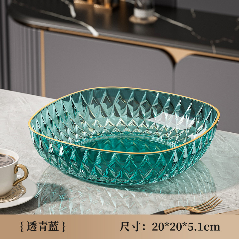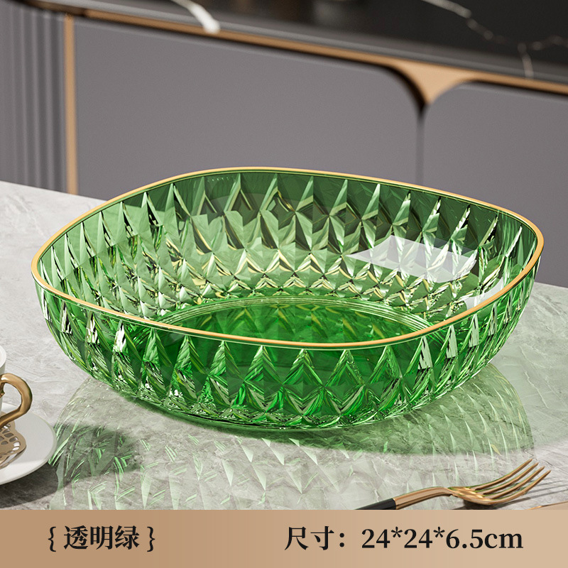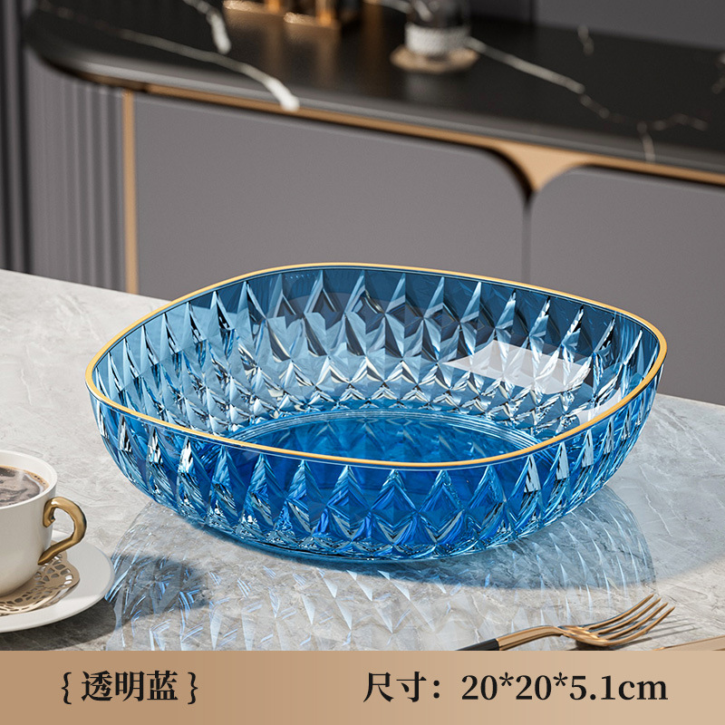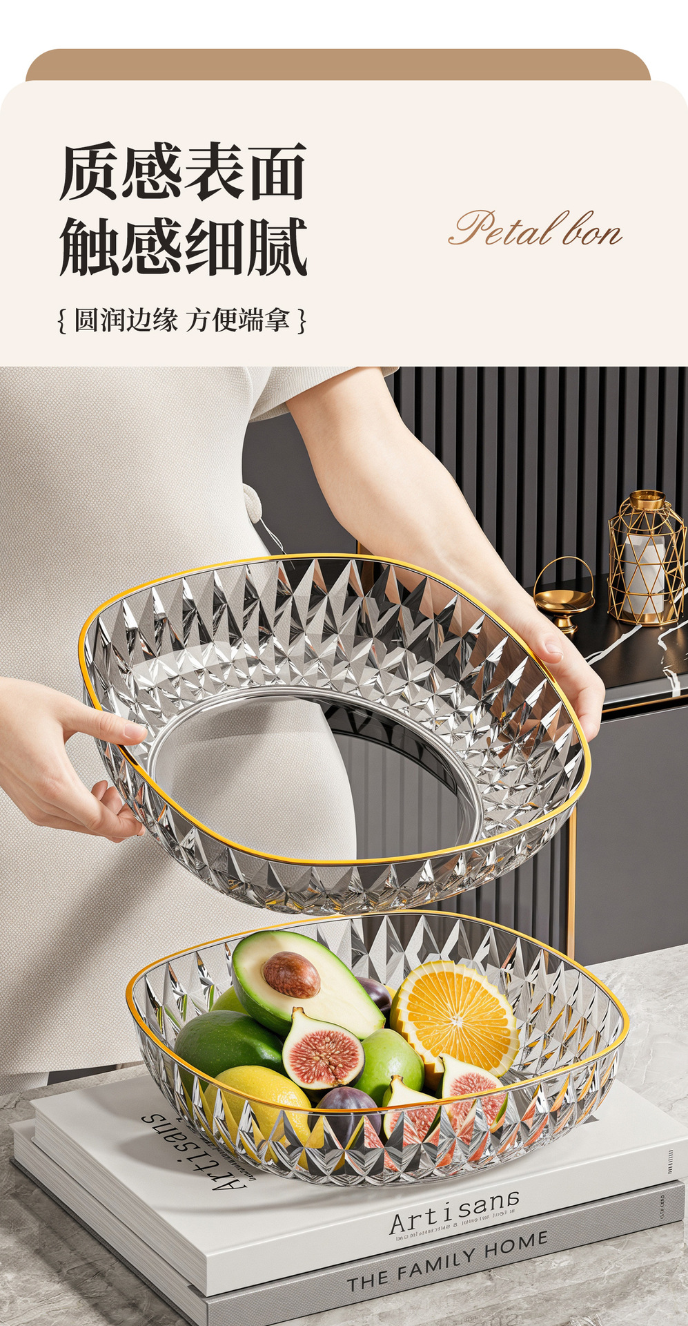 跨境水果盘子高颜值批发ins轻奢透明耐摔大容量家用客厅装坚果盘